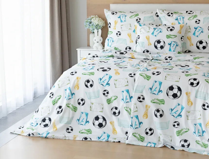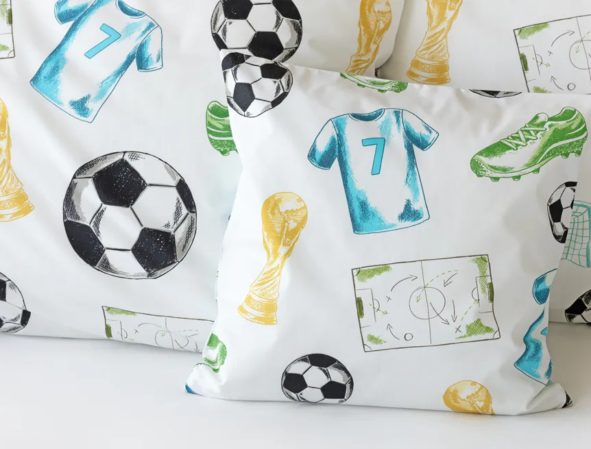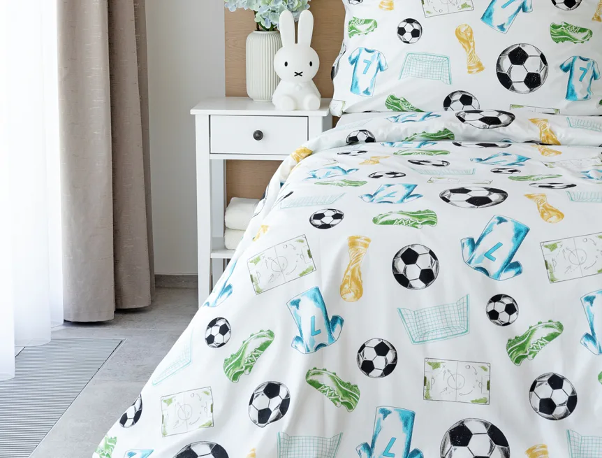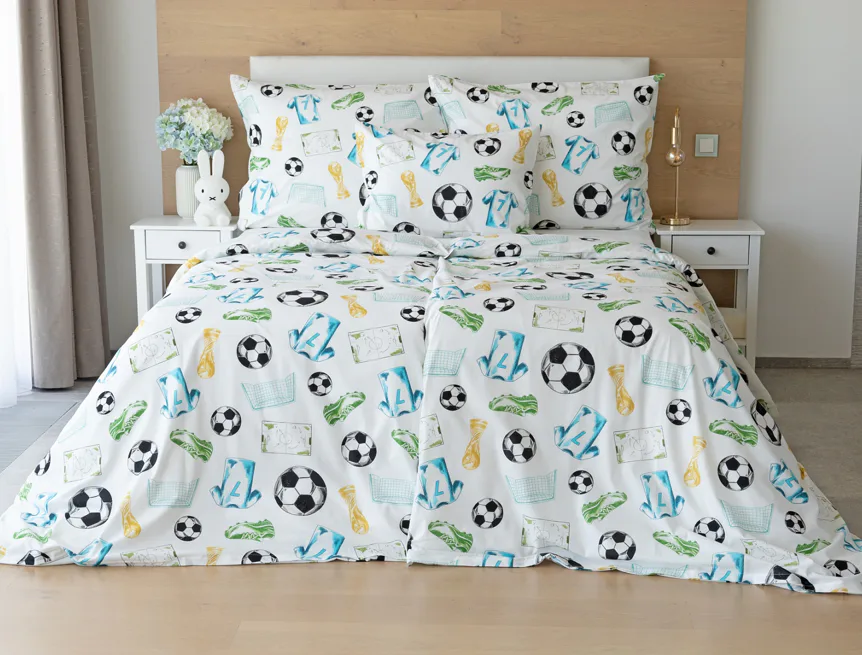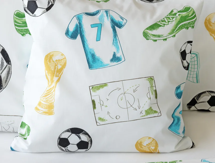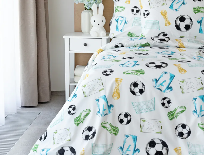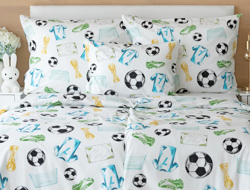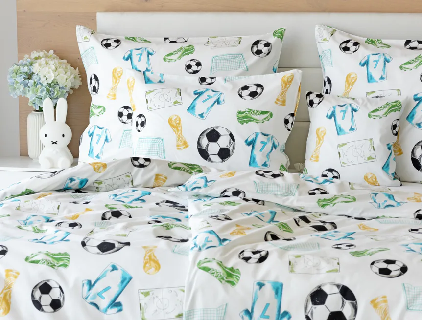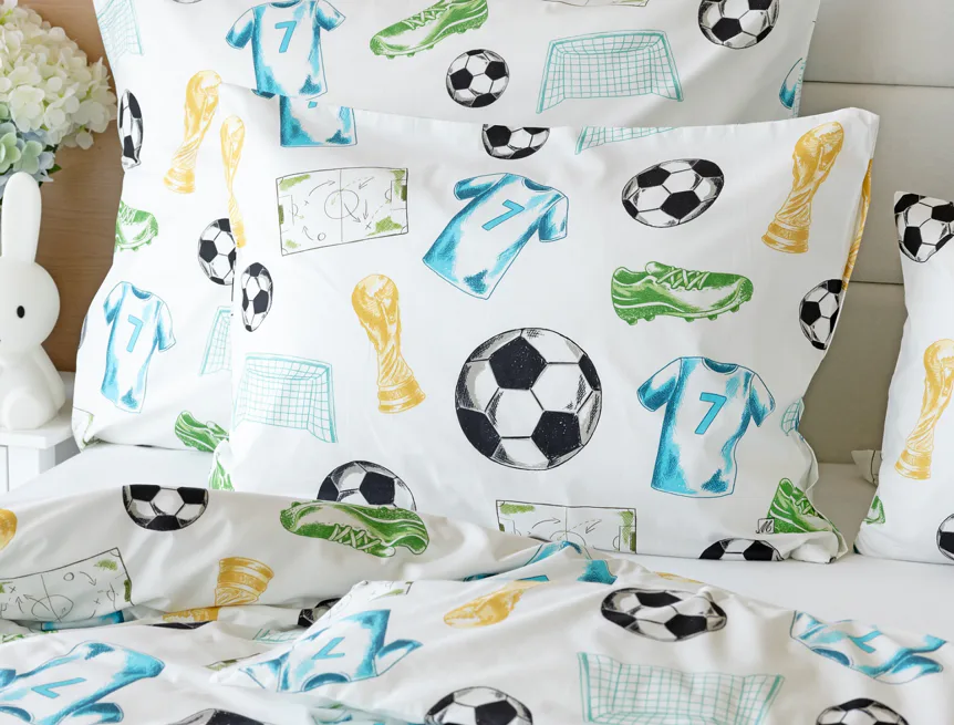 Potěšte své dítko novým bavlněným povlečením Sporty s fotbalovou tematikou. Oblíbený sportovní motiv kombinuje atraktivní barvy na bílém podkladu. Díky stoprocentní prvotřídní bavlně budou spokojeně usínat děti i rodiče.