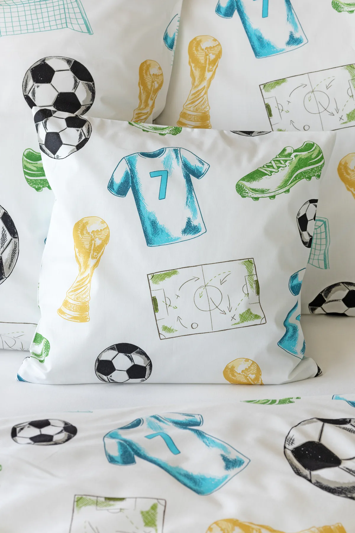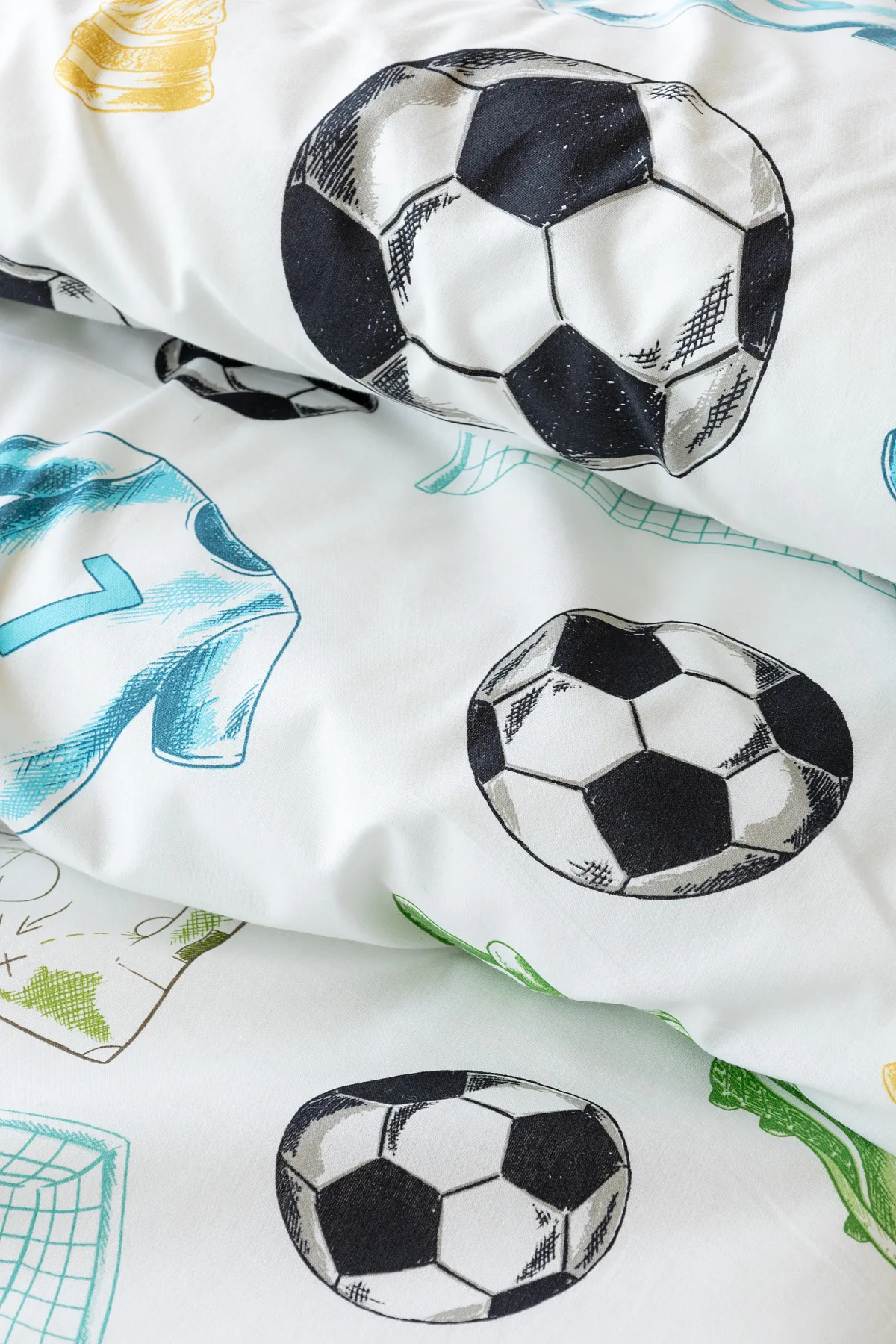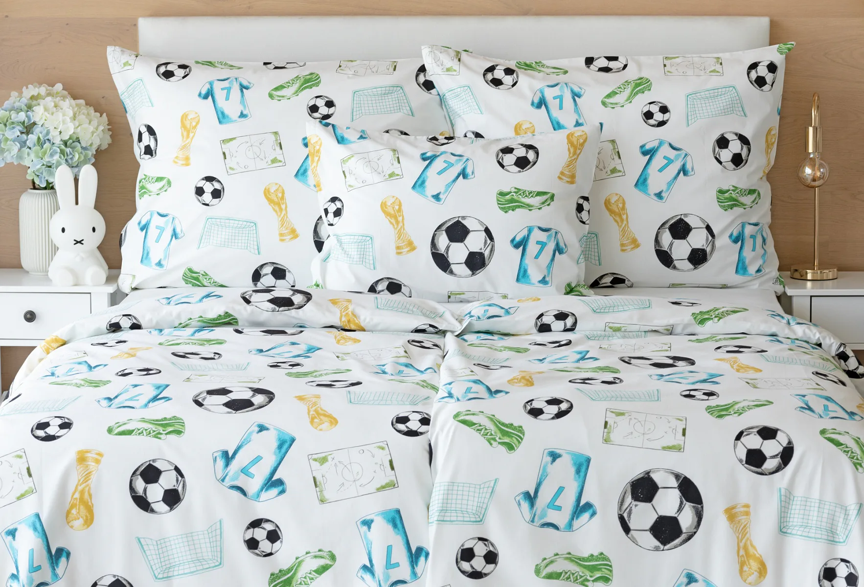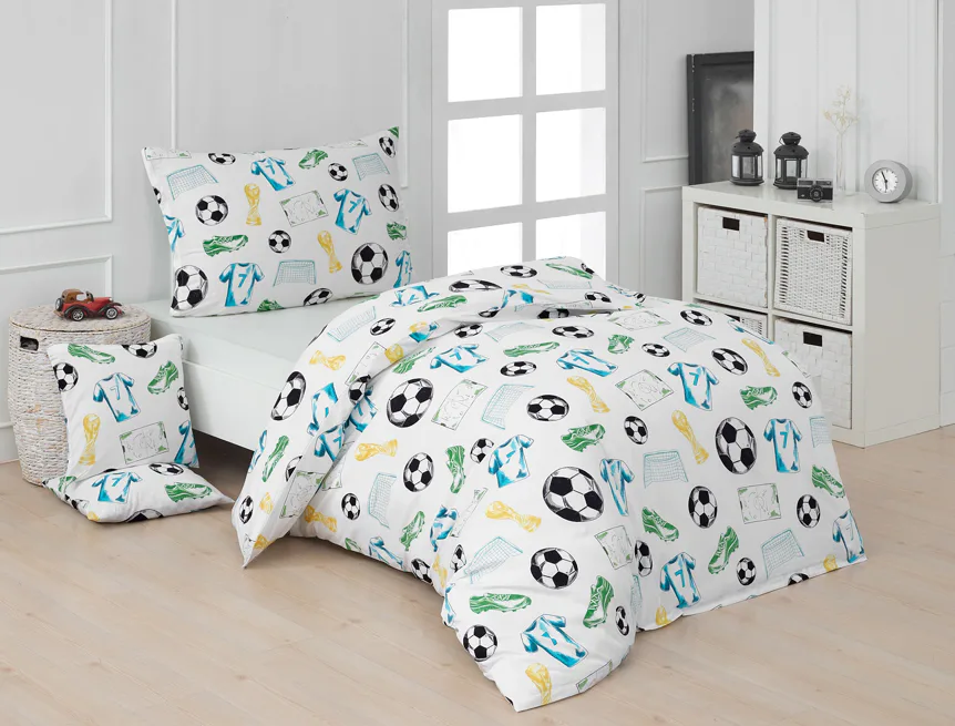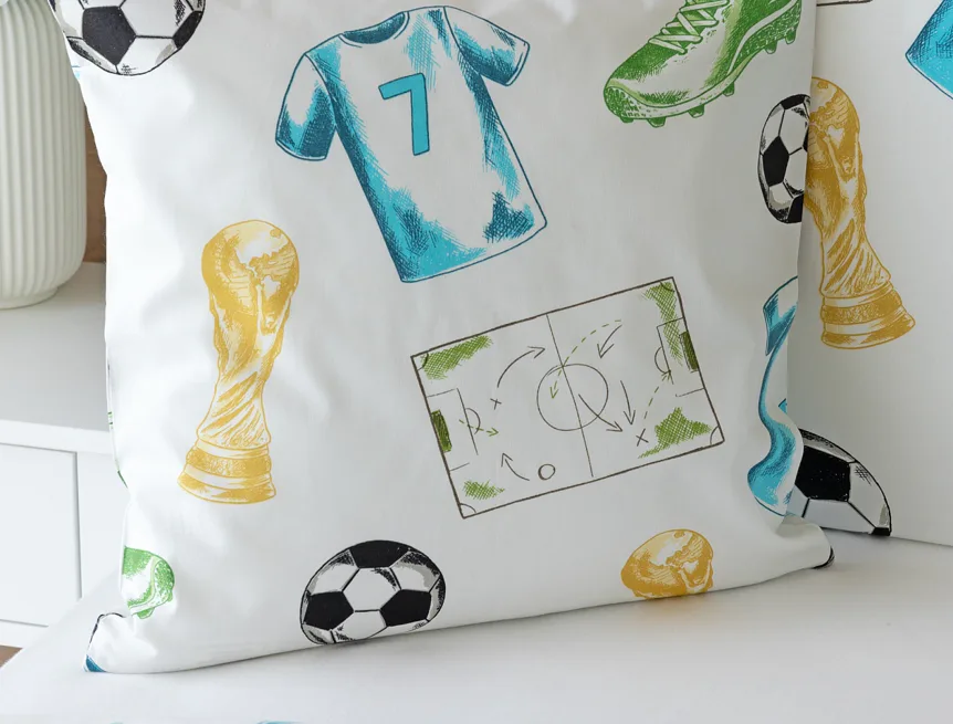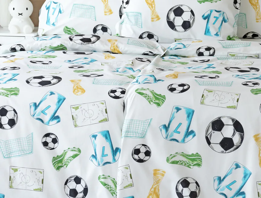 Potěšte své dítko novým bavlněným povlečením Sporty s fotbalovou tematikou. Oblíbený sportovní motiv kombinuje atraktivní barvy na bílém podkladu. Díky stoprocentní prvotřídní bavlně budou spokojeně usínat děti i rodiče.