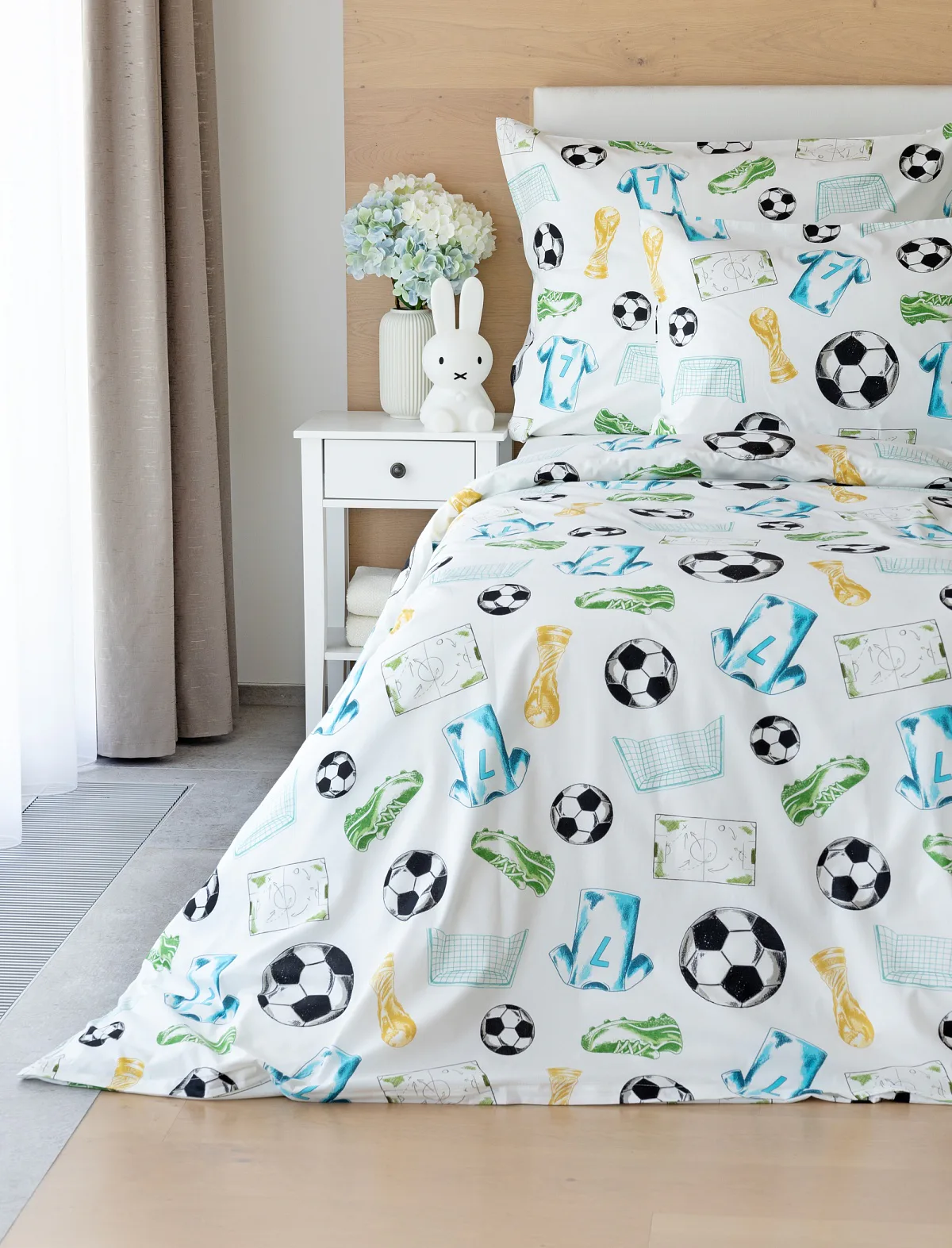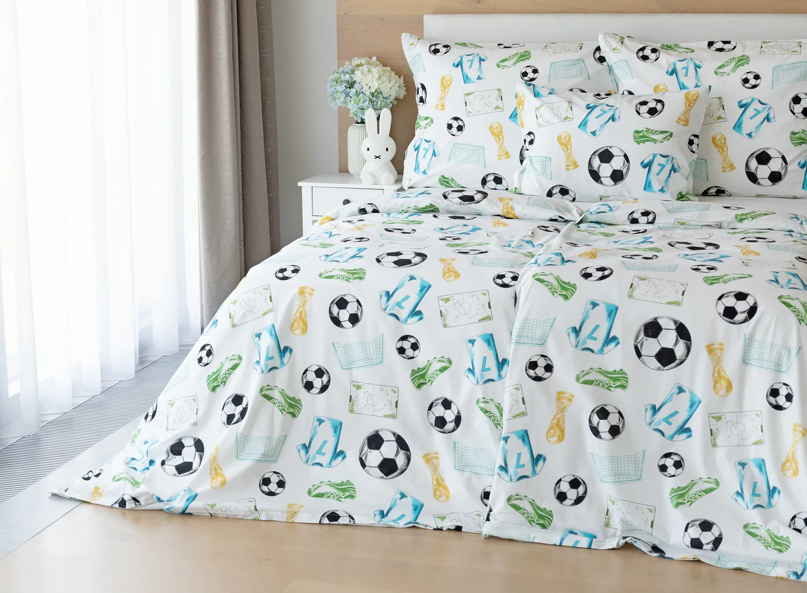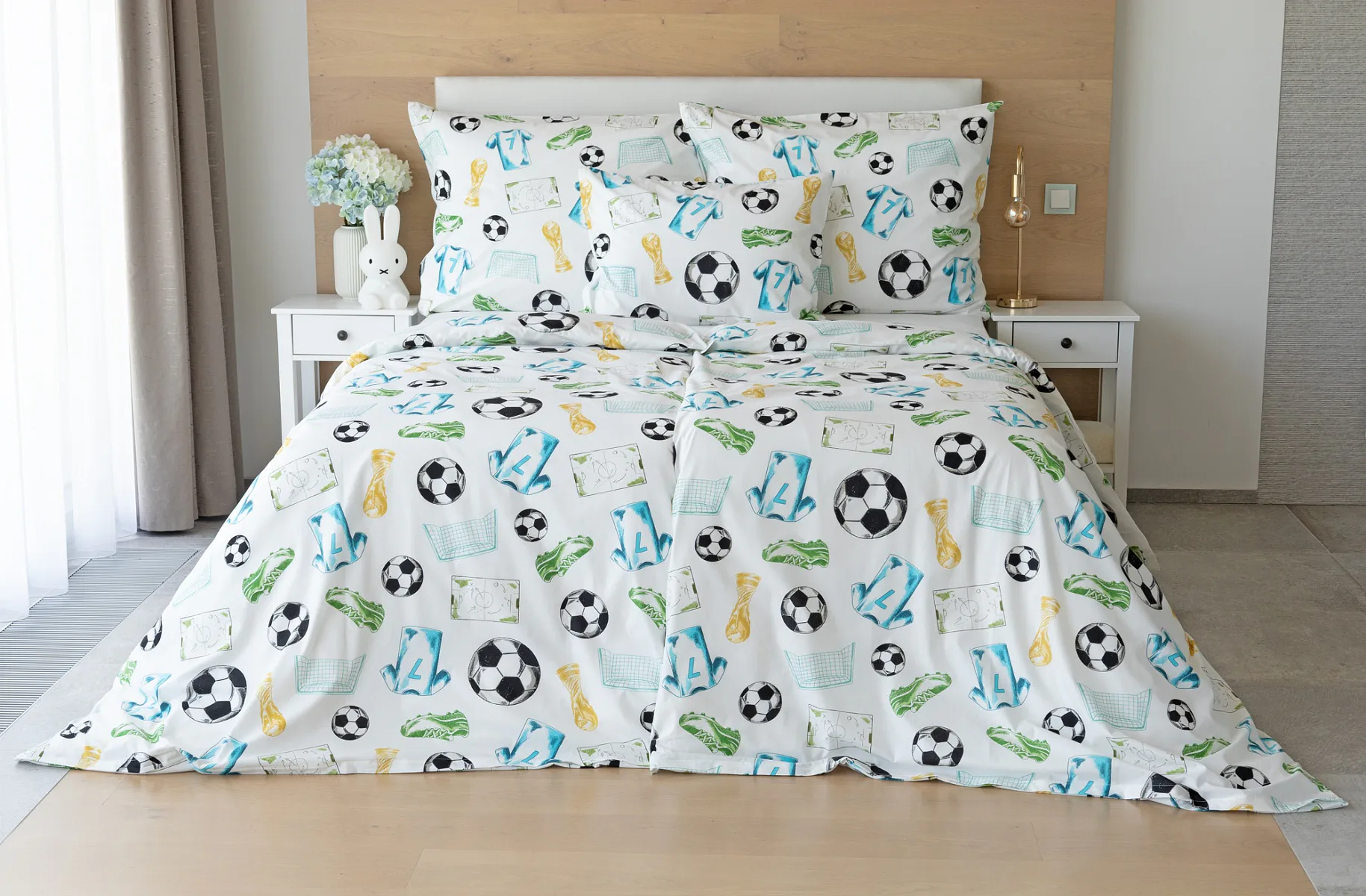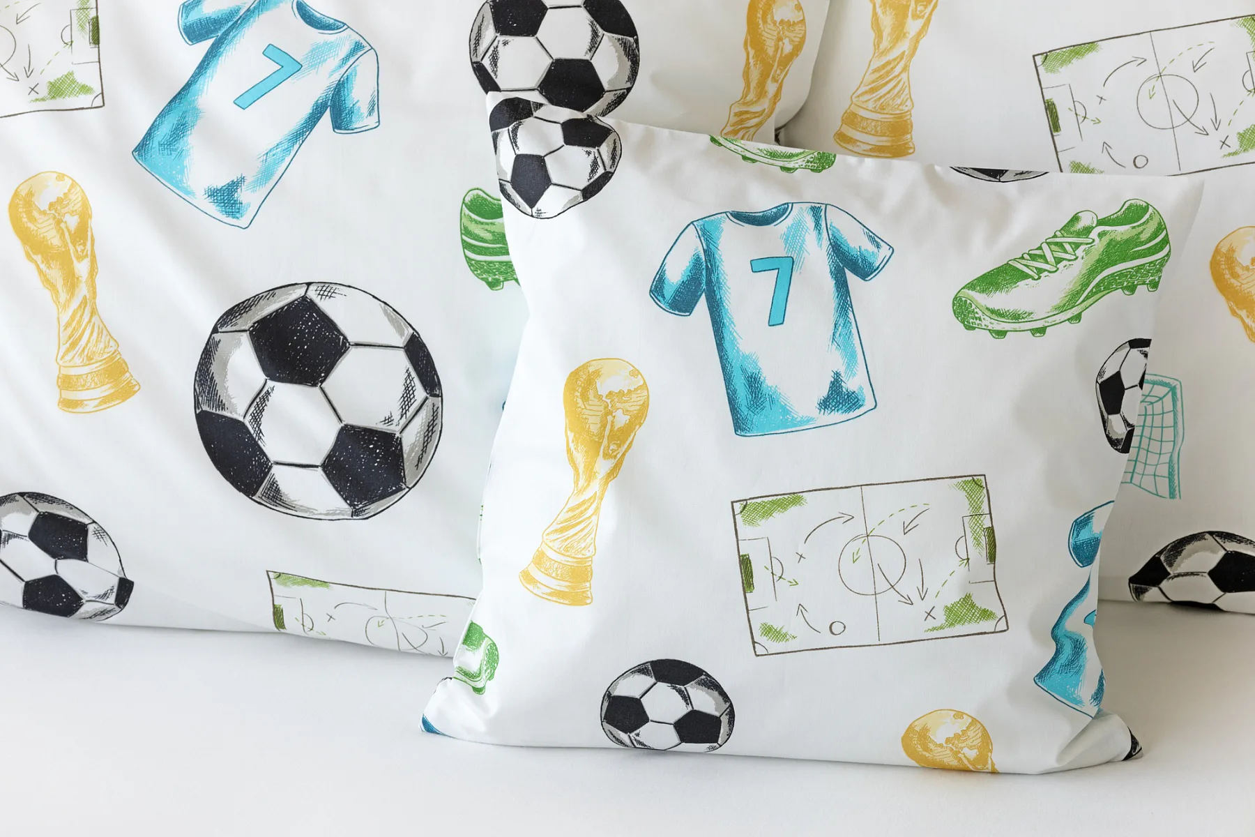 Potěšte své dítko novým bavlněným povlečením Sporty s fotbalovou tematikou. Oblíbený sportovní motiv kombinuje atraktivní barvy na bílém podkladu. Díky stoprocentní prvotřídní bavlně budou spokojeně usínat děti i rodiče.