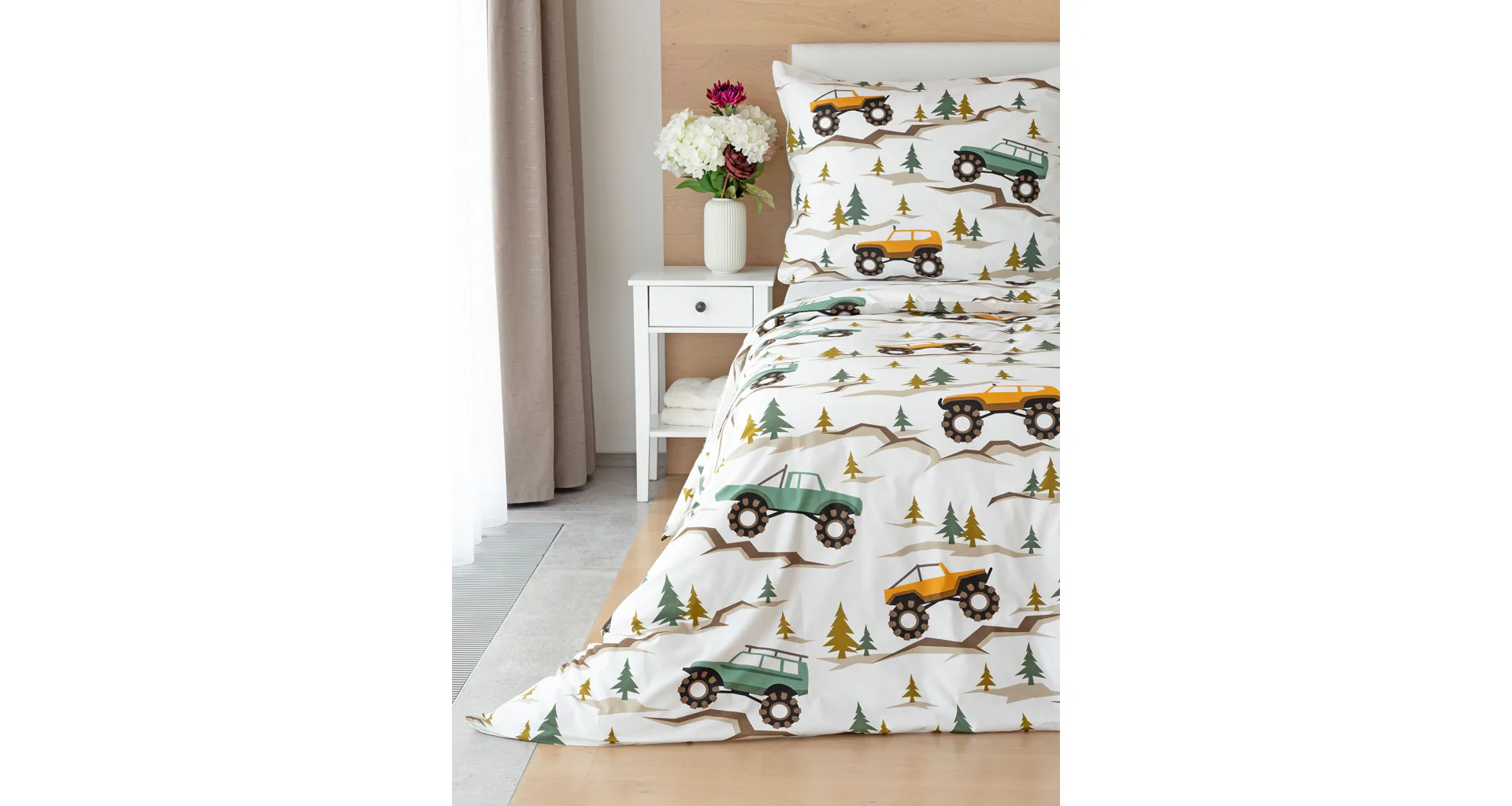 Malí milovníci aut s velkými koly se nadchnou při pohledu na bavlněné ložní povlečení Truck. Hravý dětský motiv kombinuje atraktivní barvy a díky stoprocentní prvotřídní bavlně budou spokojeně usínat děti i rodiče.