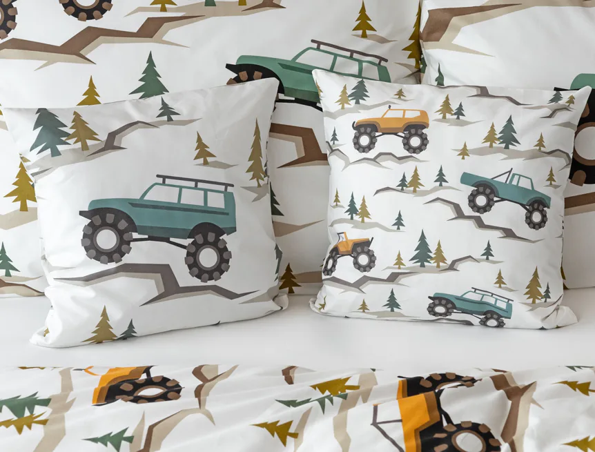Povlak na přikrývku je z obou stran stejný, povlak na polštář zachycuje na spodní straně více aut. Povlečení je opatřeno komfortním zipovým uzávěrem.