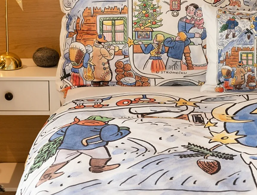 Povlečení se zimními motivy kreseb Josefa Lady, které do českých domovů přinášejí tu pravou vánoční poetiku, se stane unikátním praktickým solitérem i originální dárkem. Vykouzlete si jedinečnou atmosféru také u sebe doma díky bavlněnému povlečení Vánoce.