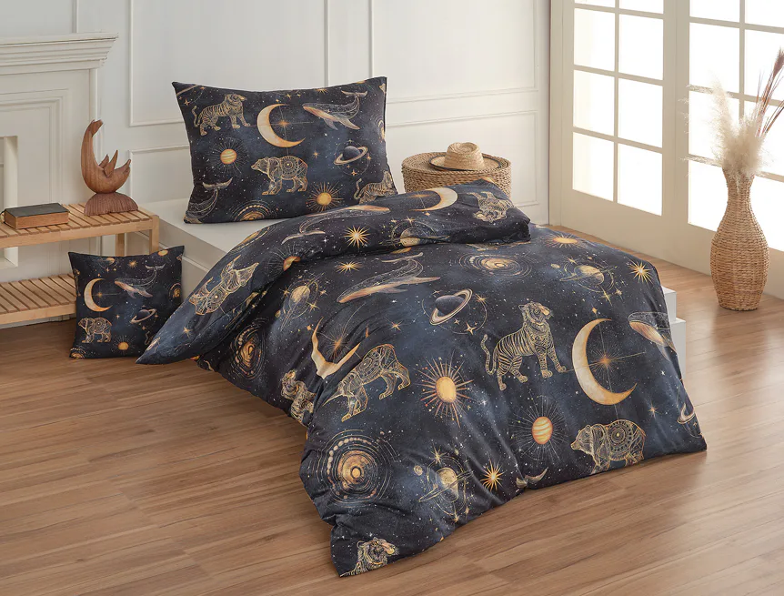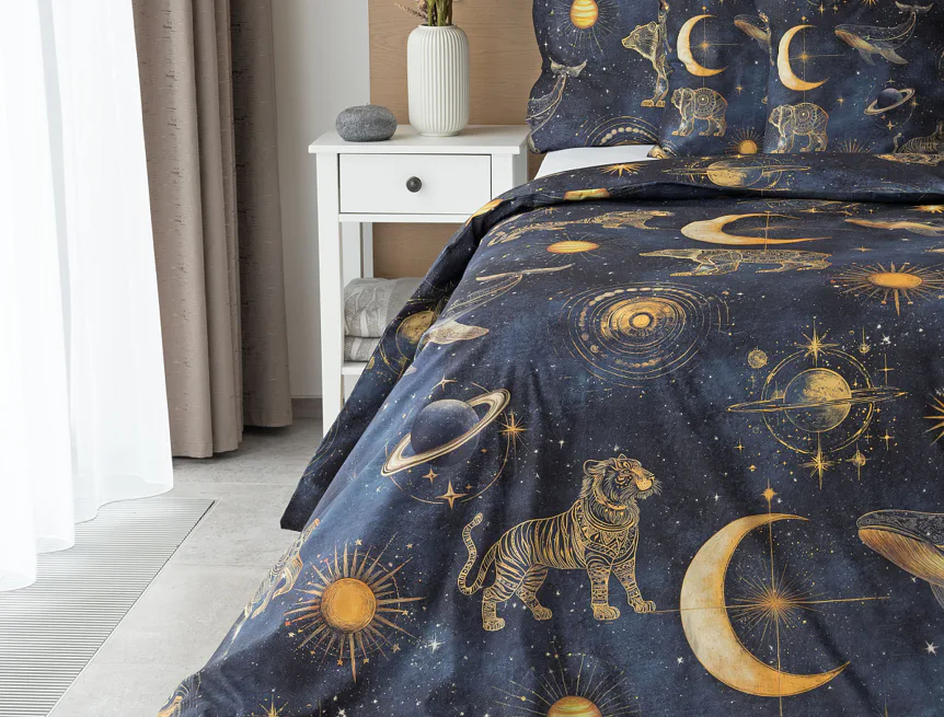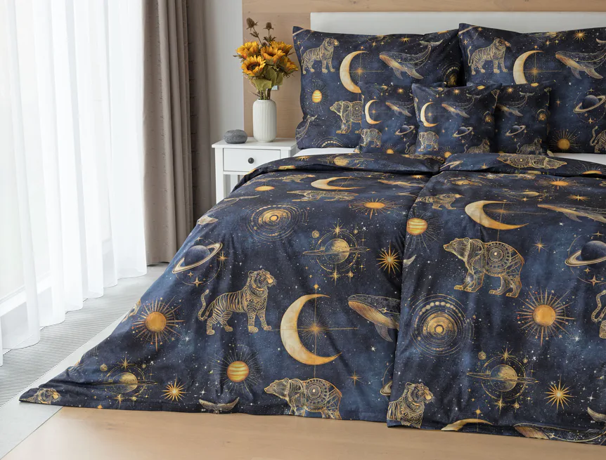 Tajemná galaxie je fascinující pro všechny generace. Nechte své děti objevovat kouzlo nekonečného vesmíru přímo z útulného zázemí dětského pokoje. Naše bavlněné povlečení Veloria s originálním galaktickým designem vytváří atmosféru klidu, dobrodružství a snění, která potěší děti i teenagery. Povlečení je vyrobené z prvotřídní bavlny, která zajistí klidný spánek dětí i rodičů.