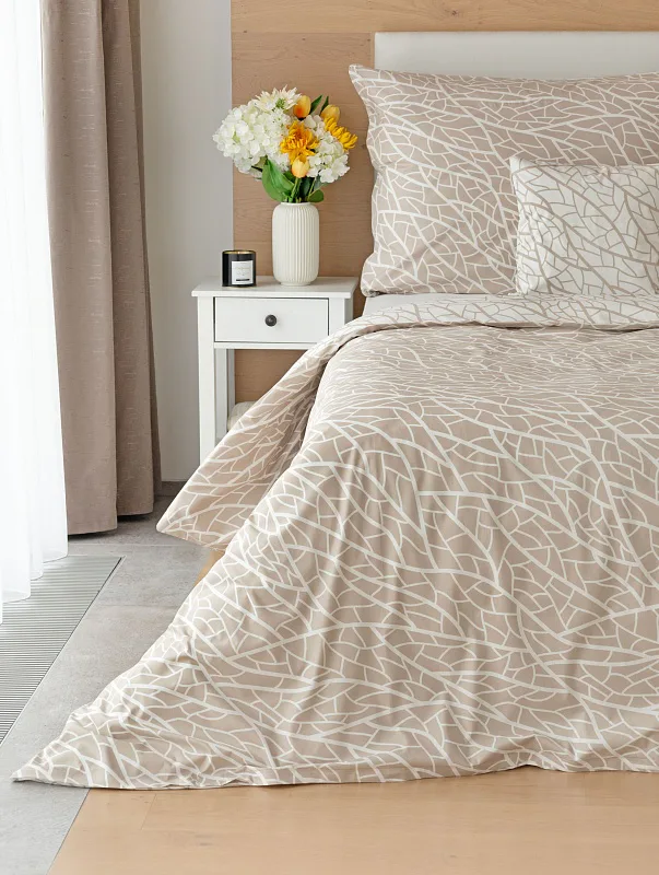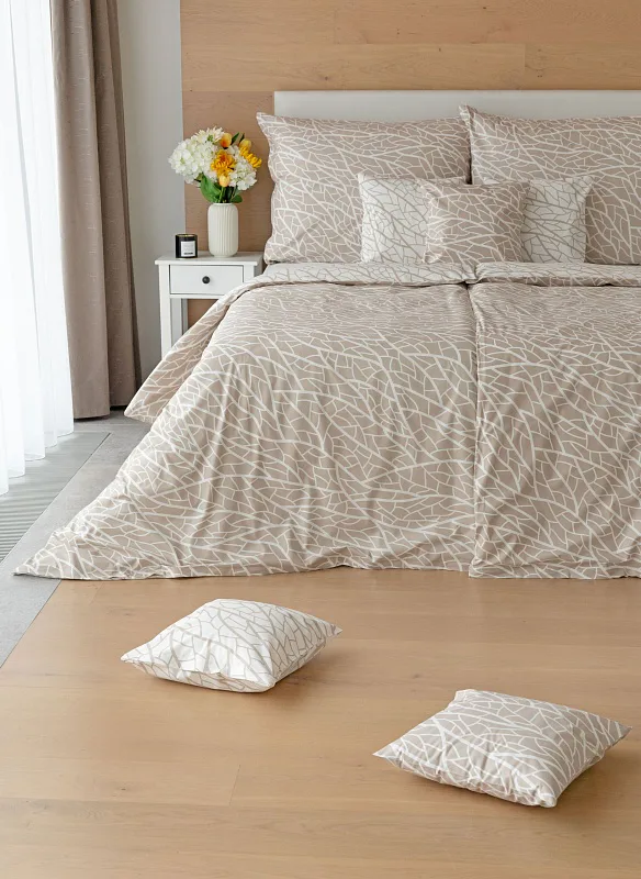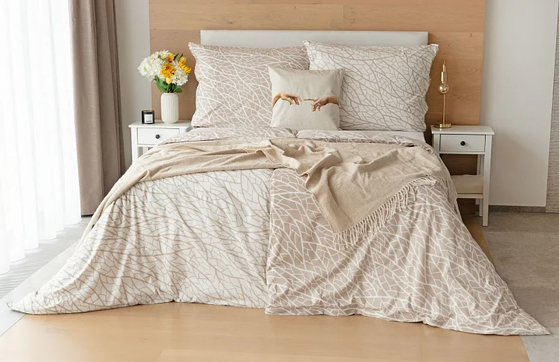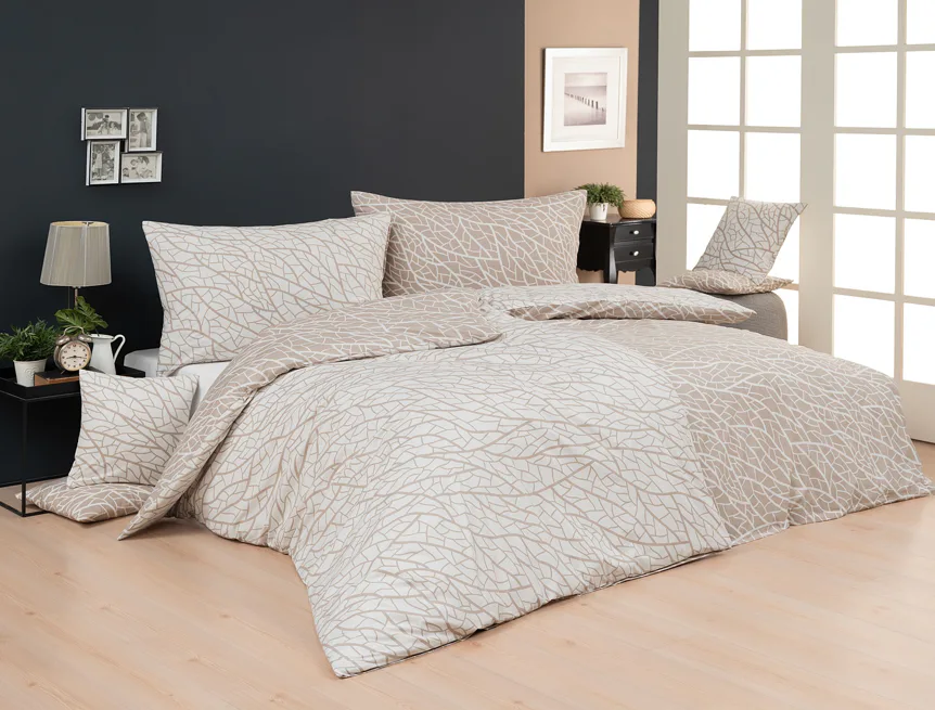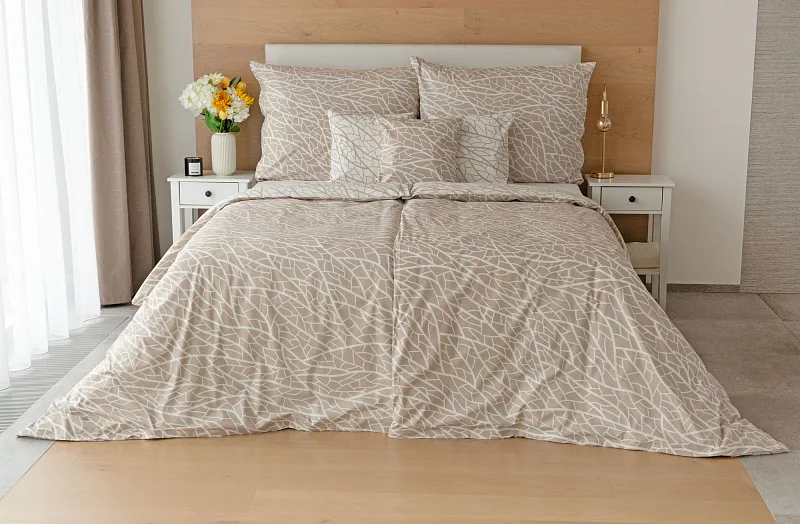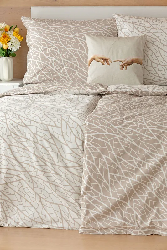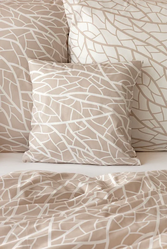 Ložní povlečení Venatio je jako stvořené pro milovníky střídmé elegance se smyslem pro detail. V nápaditém vzoru se snoubí hřejivý odstín bílé kávy protnutý krémově bílou. Díky oblíbenému oboustrannému provedení můžete při stlaní hravě improvizovat.