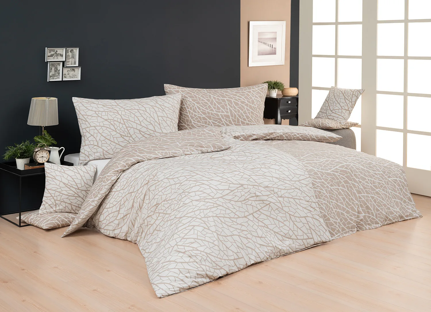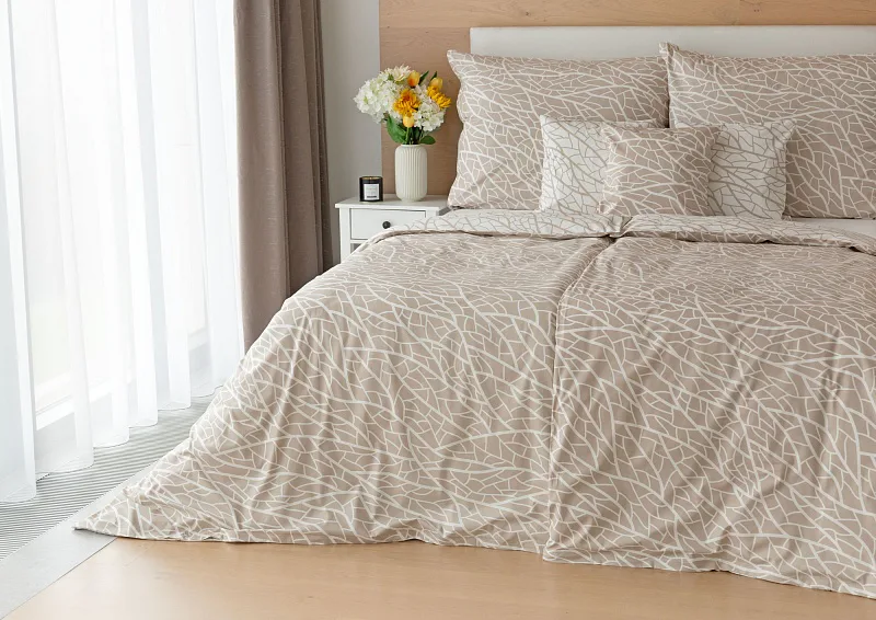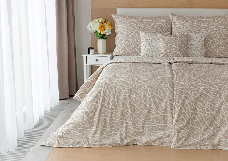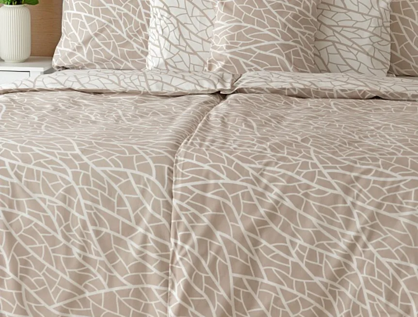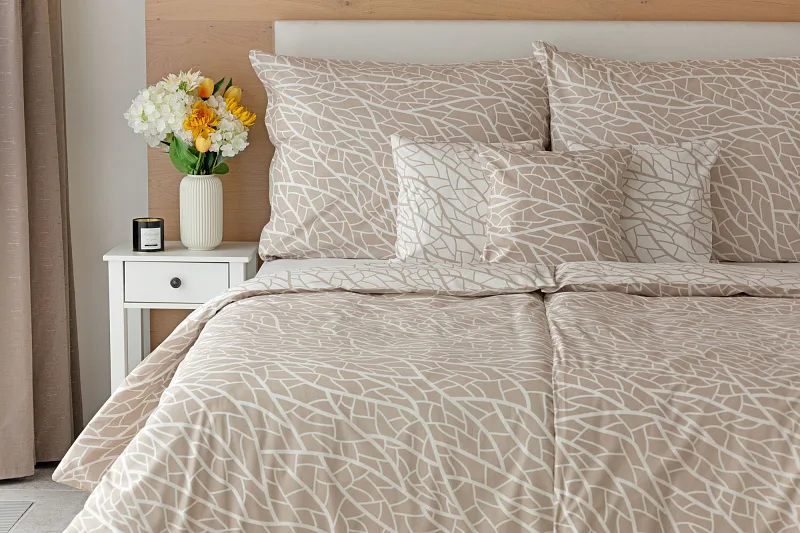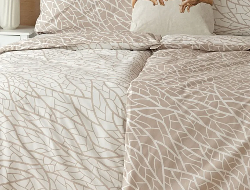 Ložní povlečení Venatio je jako stvořené pro milovníky střídmé elegance se smyslem pro detail. V nápaditém vzoru se snoubí hřejivý odstín bílé kávy protnutý krémově bílou. Díky oblíbenému oboustrannému provedení můžete při stlaní hravě improvizovat.