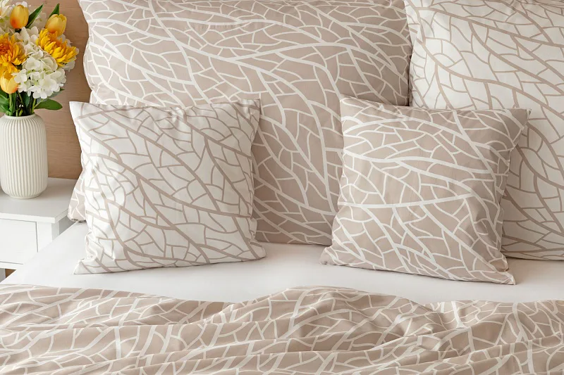 Povlaky na polštářky 40/40 cm se šijí ze stejné látky jako ložní povlečení, vzhledem k rozmanitosti vzoru může být každý povláček jiný.