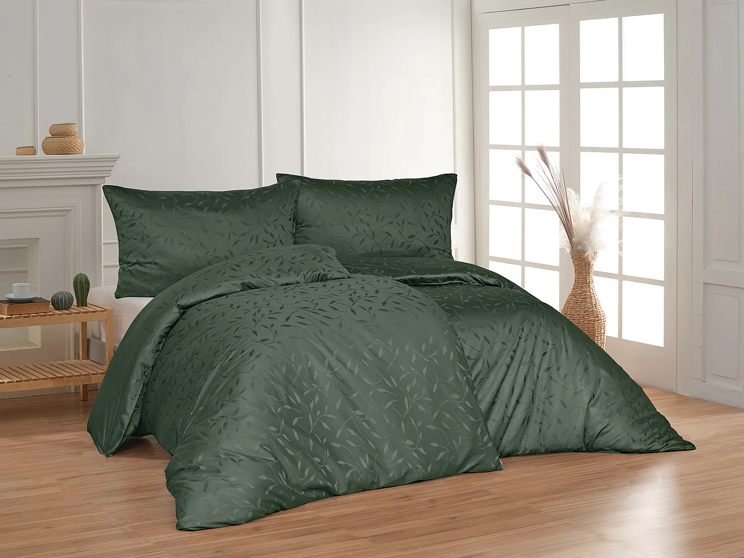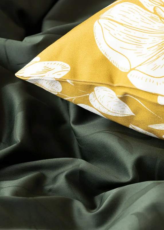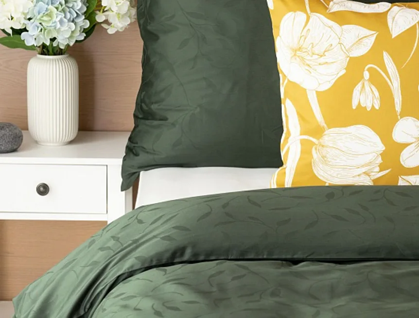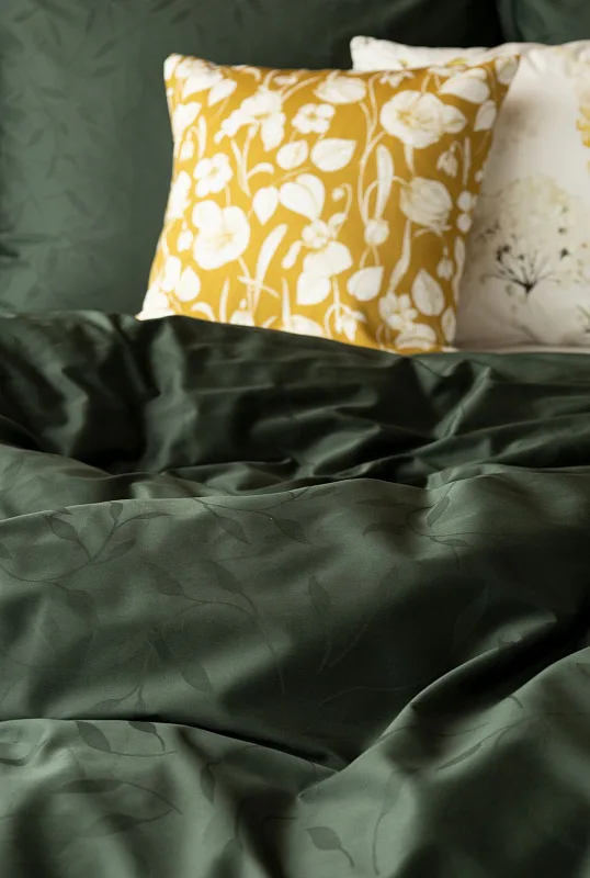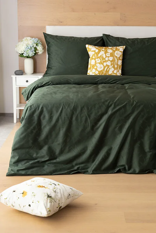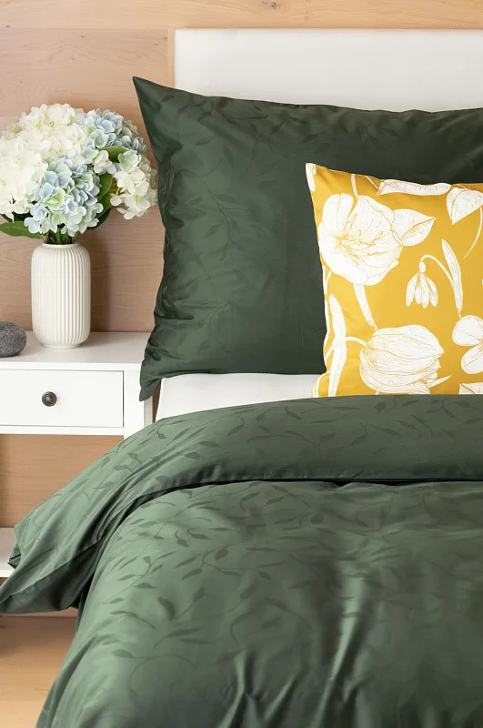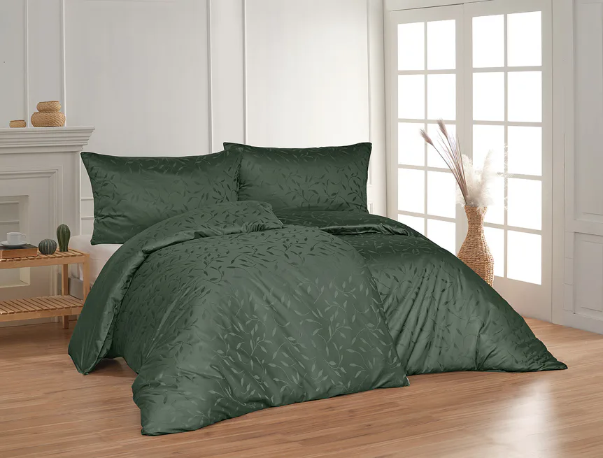 Tato synonyma vystihují žakárové damaškové povlečení VICTORIA s decentním florálním vzorem. Přirozený lesk a jemné vytkané lístky se dokonale snoubí s temně zeleným odstínem.