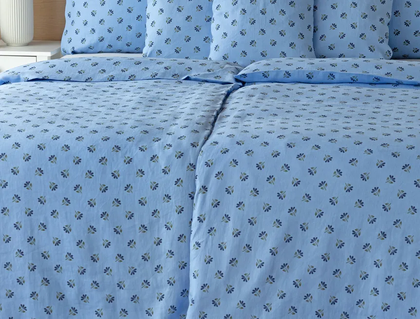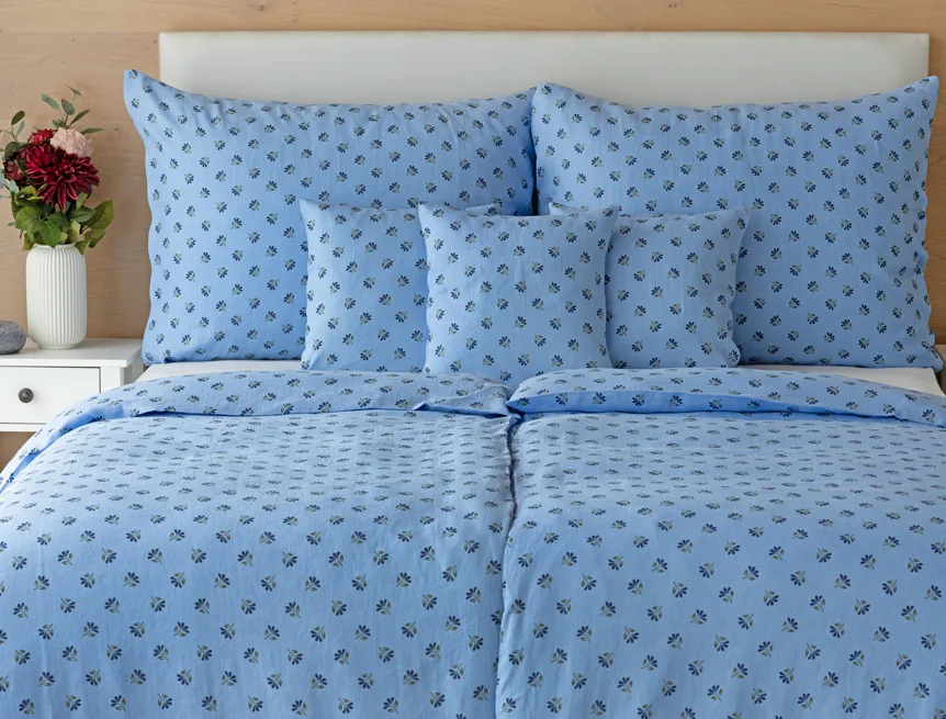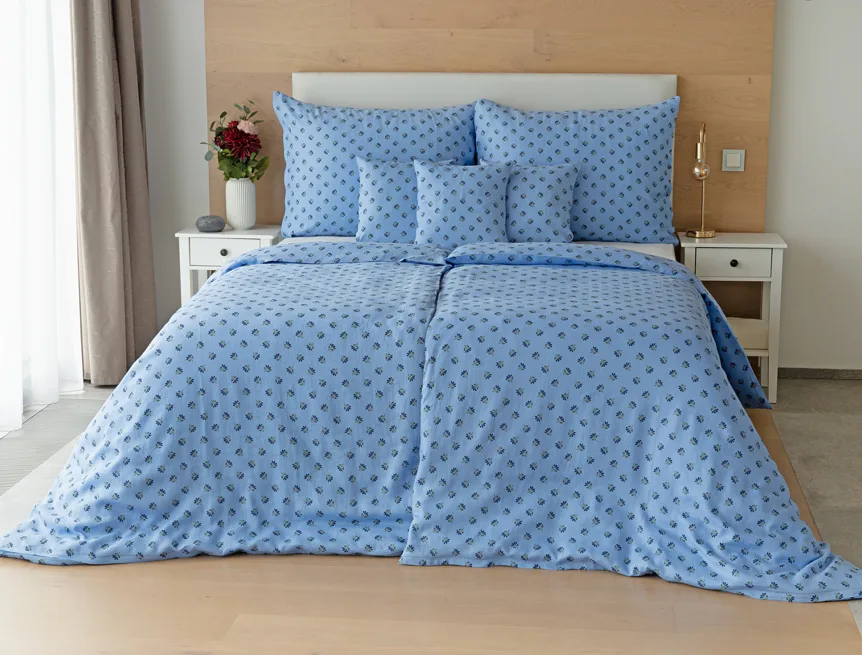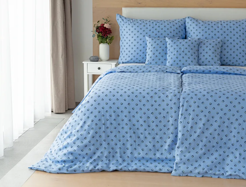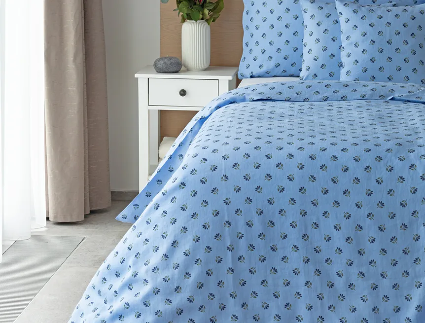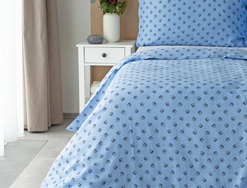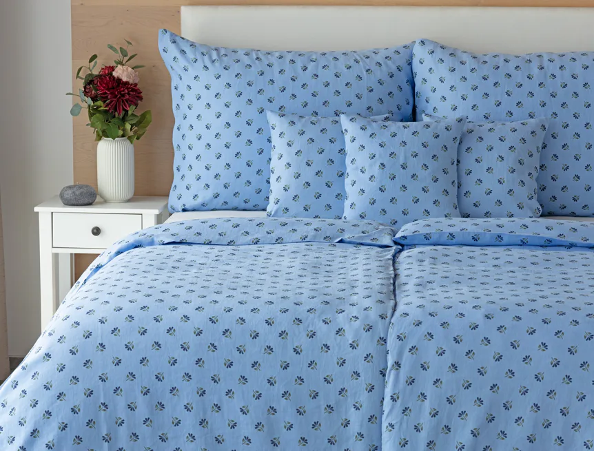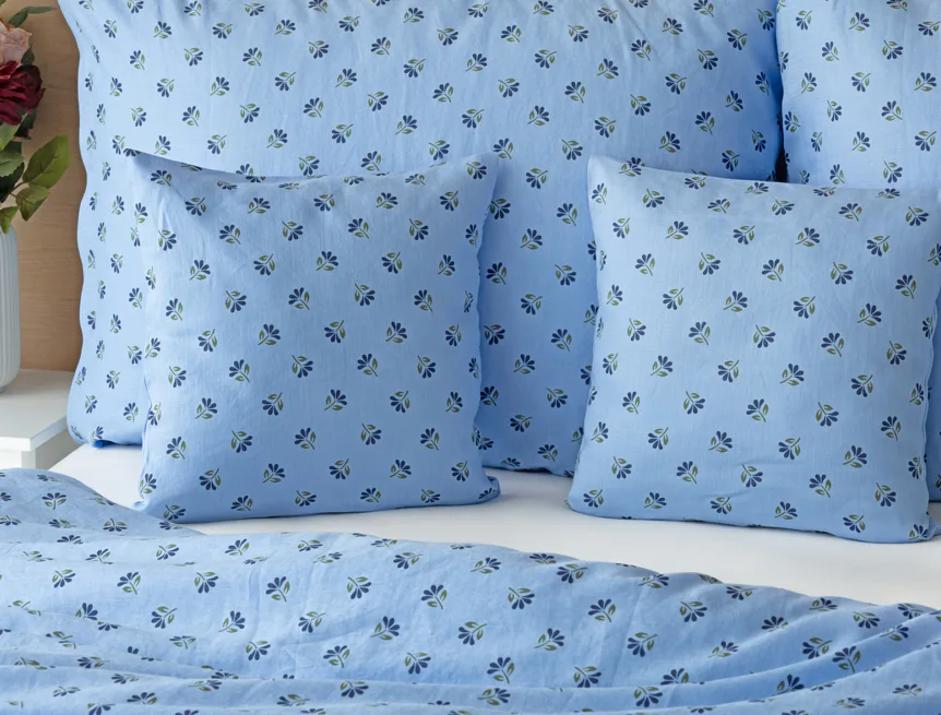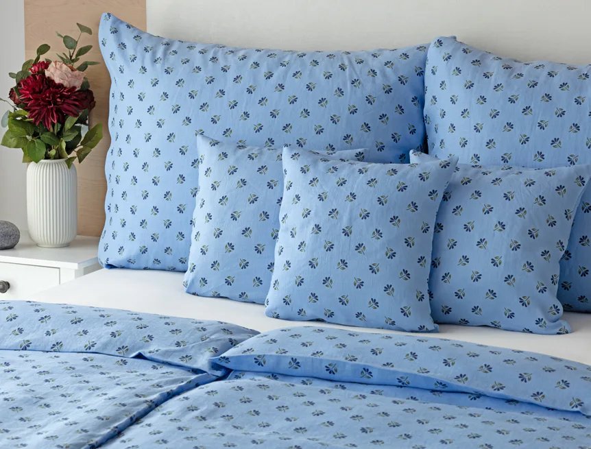 Objevte benefity jedinečného přírodního materiálu a dopřejte si nezaměnitelný komfort s naším lněným povlečením Viola. Rustikální motiv jemných kvítků na blankytně modrém podkladu je jako stvořený pro tento ekologicky šetrný materiál a doladí k dokonalosti každou ložnici ve venkovském stylu.