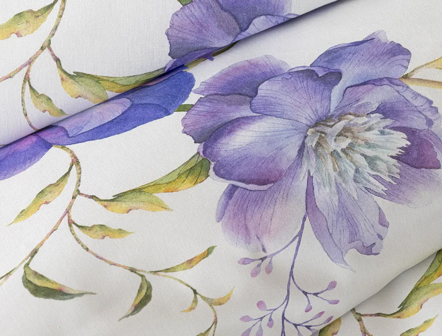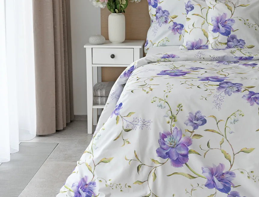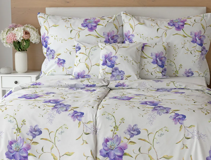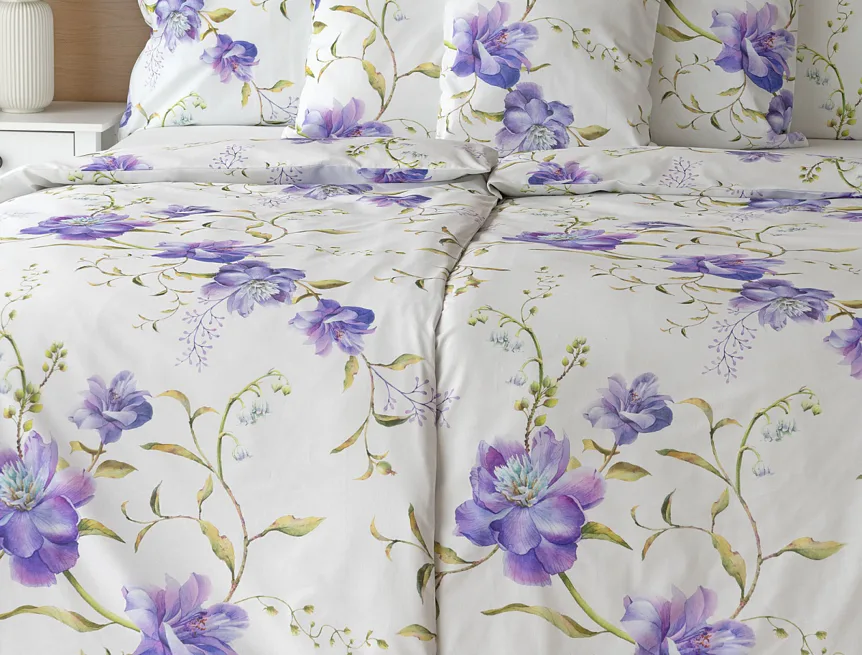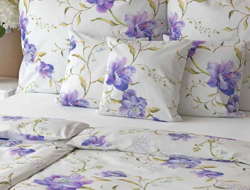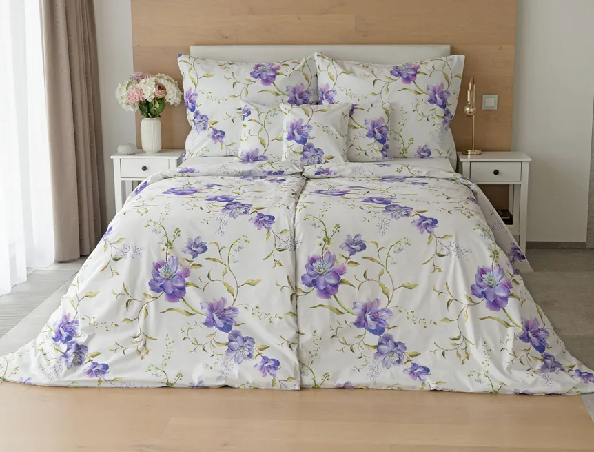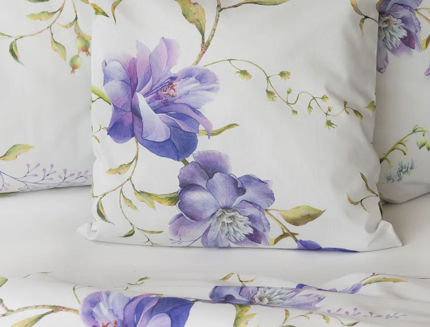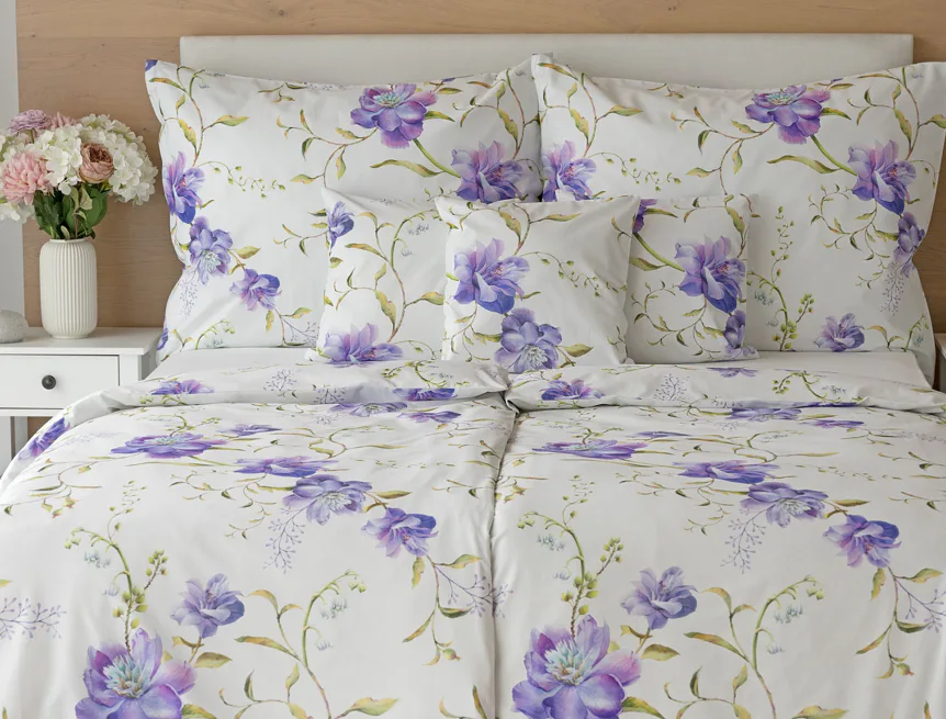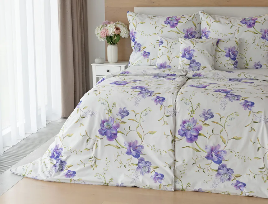 Něžný květinový motiv ložního povlečení Viola vás vtáhne do svěží atmosféry jarních dnů. Atraktivní fialové květy doplněné svěží zelení vynikají na bílém podkladu a díky nejmodernějšímu digitálnímu tisku si vychutnáte každý detail tohoto květinového vzhoru.