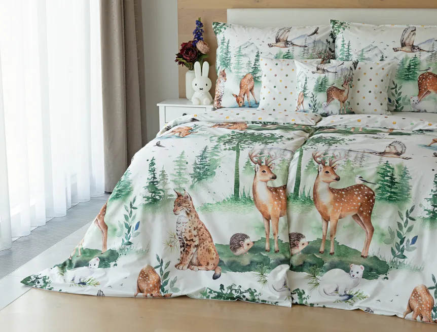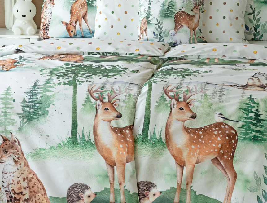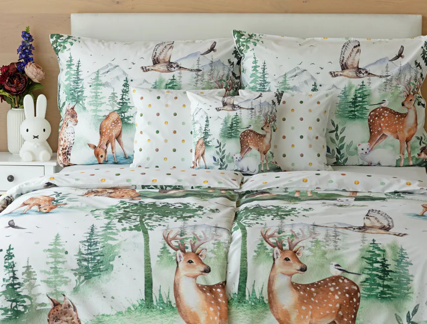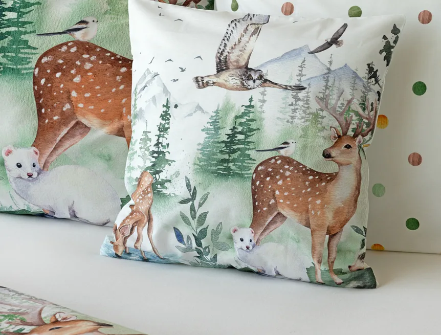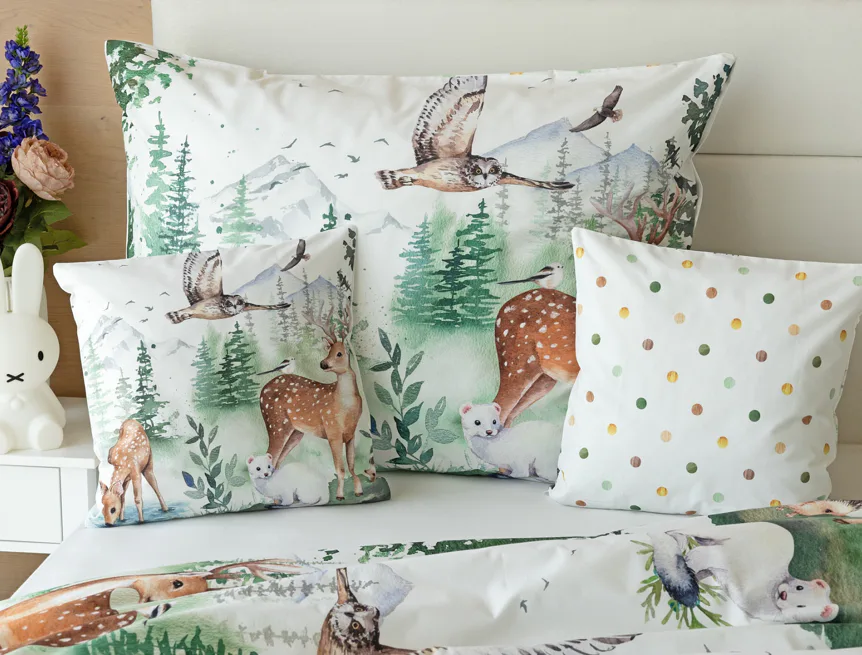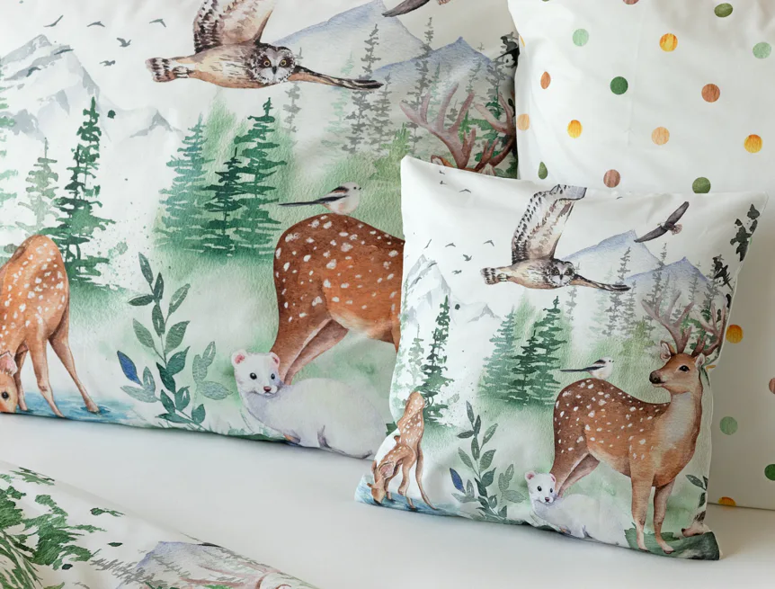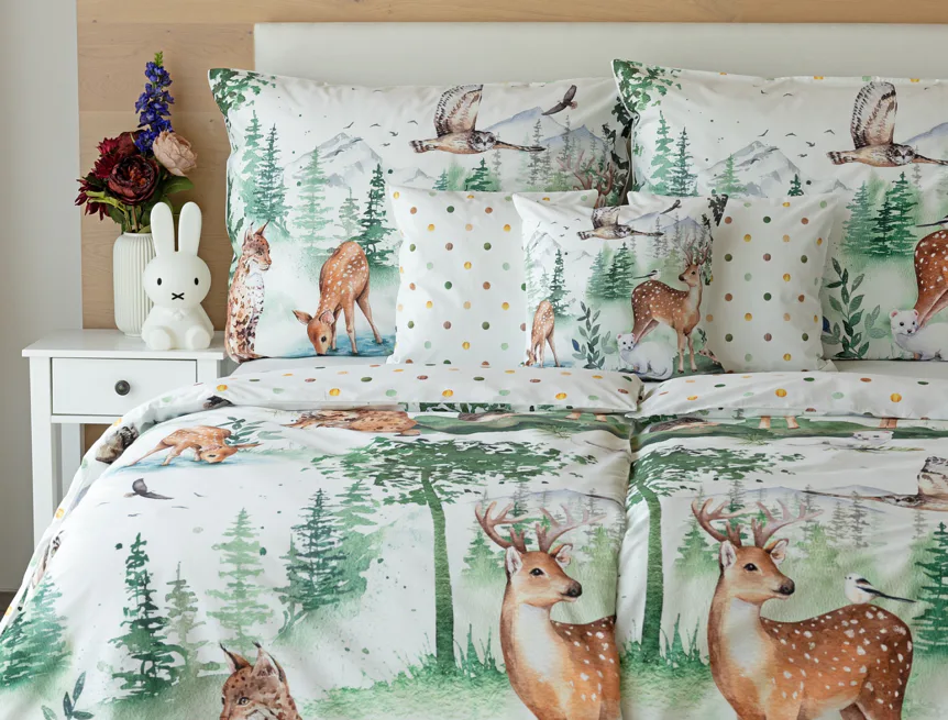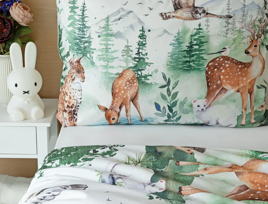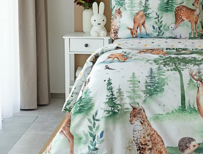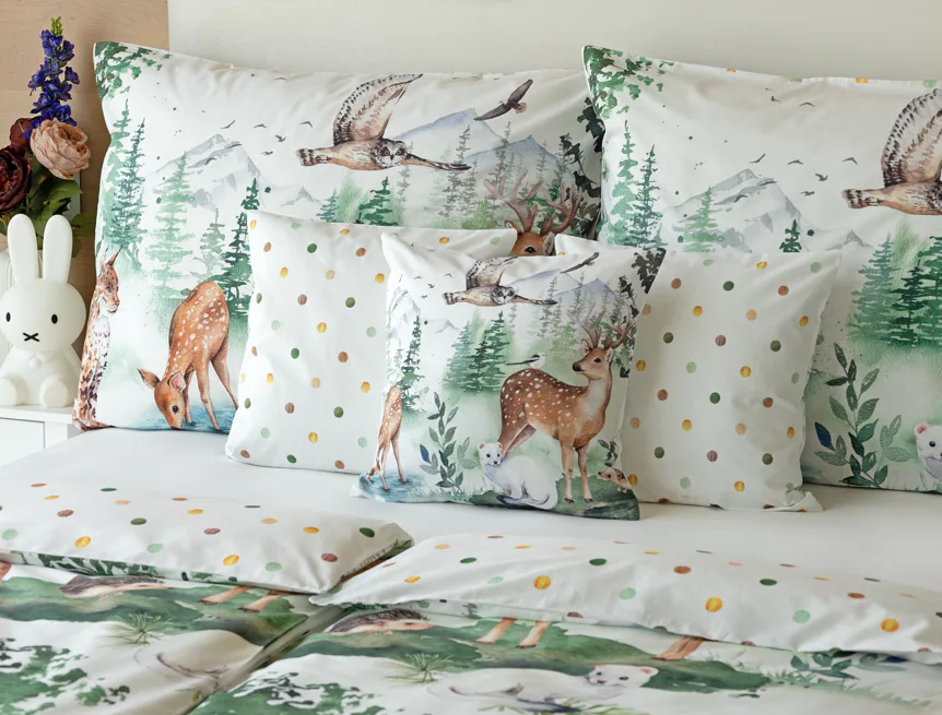S bavlněným povlečením Wild se dětský pokojíček promění v útulnou říši lesních zvířátek, o kterých můžete před spaním vyprávět příběhy. Podkladem tohoto vzoru se stala ruční malba, která vyniká na povlečení v precizním detailu díky nejmodernějšímu digitálnímu tisku. Vaše děti budou spokojeně snít díky vysoce kvalitnímu materiálu z výběrové 100% bavlny.