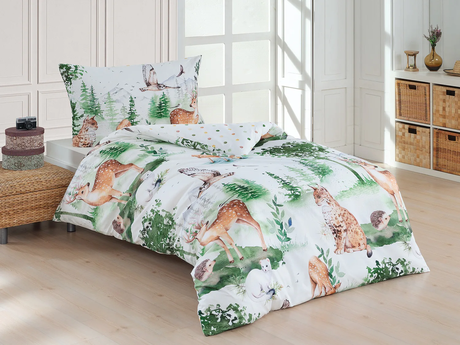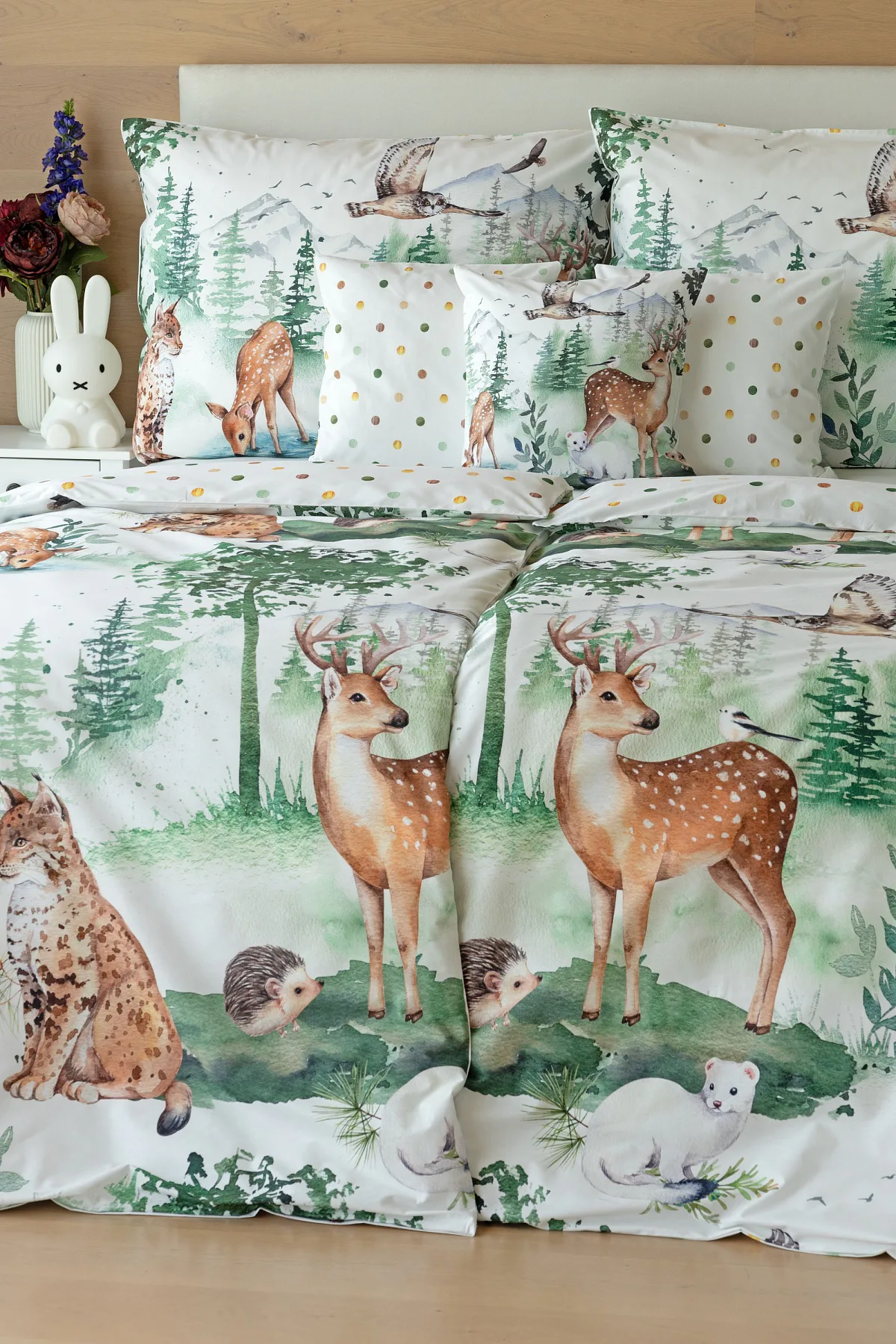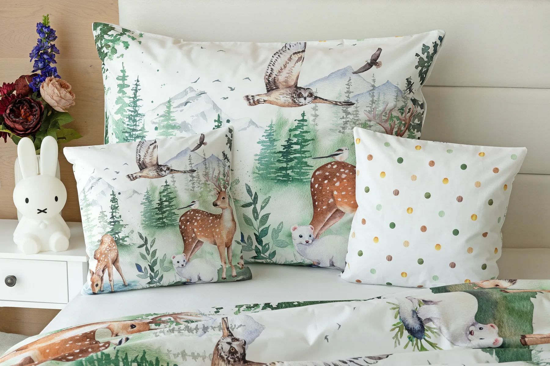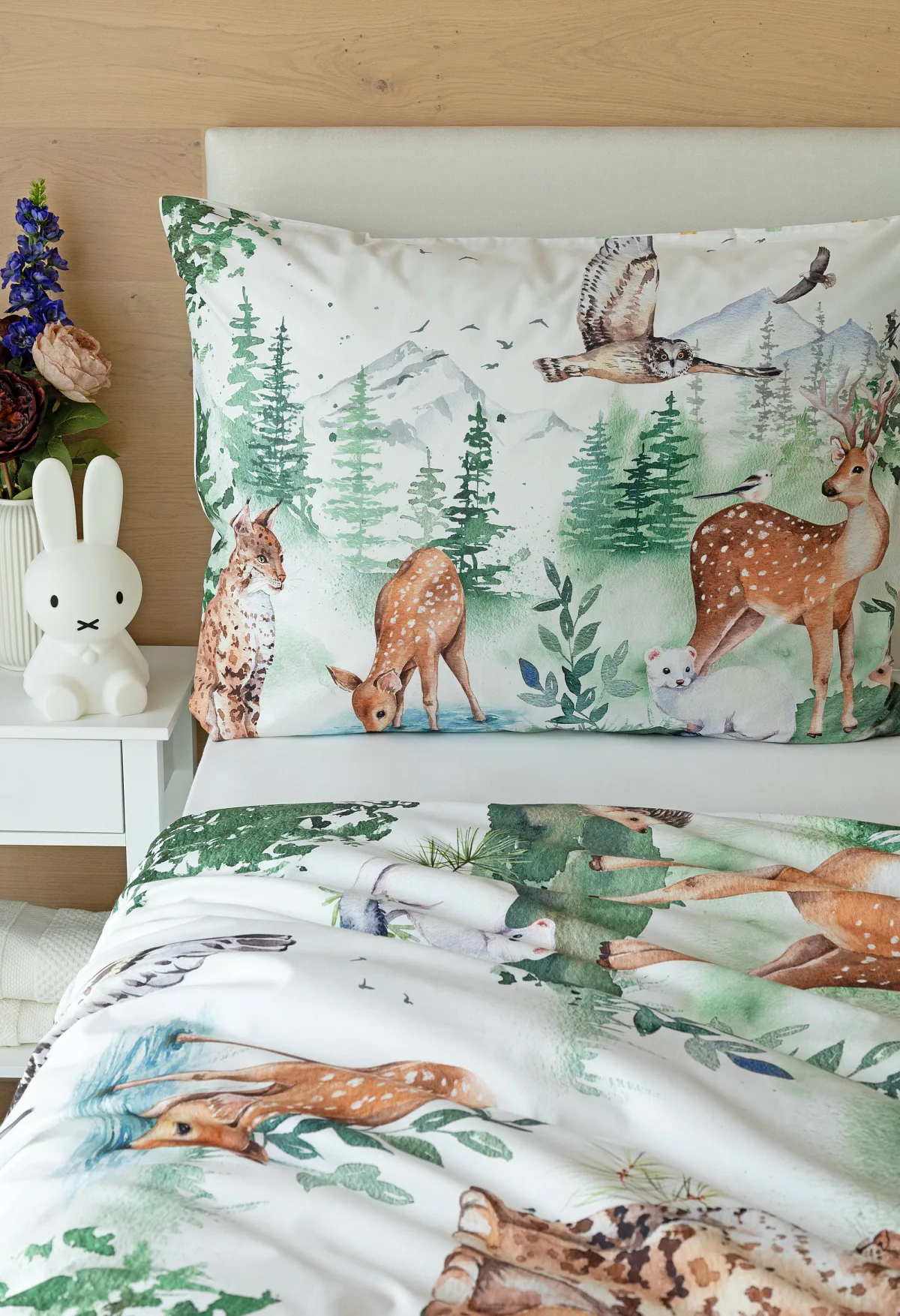 S bavlněným povlečením Wild se dětský pokojíček promění v útulnou říši lesních zvířátek, o kterých můžete před spaním vyprávět příběhy. Podkladem tohoto vzoru se stala ruční malba, která vyniká na povlečení v precizním detailu díky nejmodernějšímu digitálnímu tisku. Vaše děti budou spokojeně snít díky vysoce kvalitnímu materiálu z výběrové 100% bavlny.