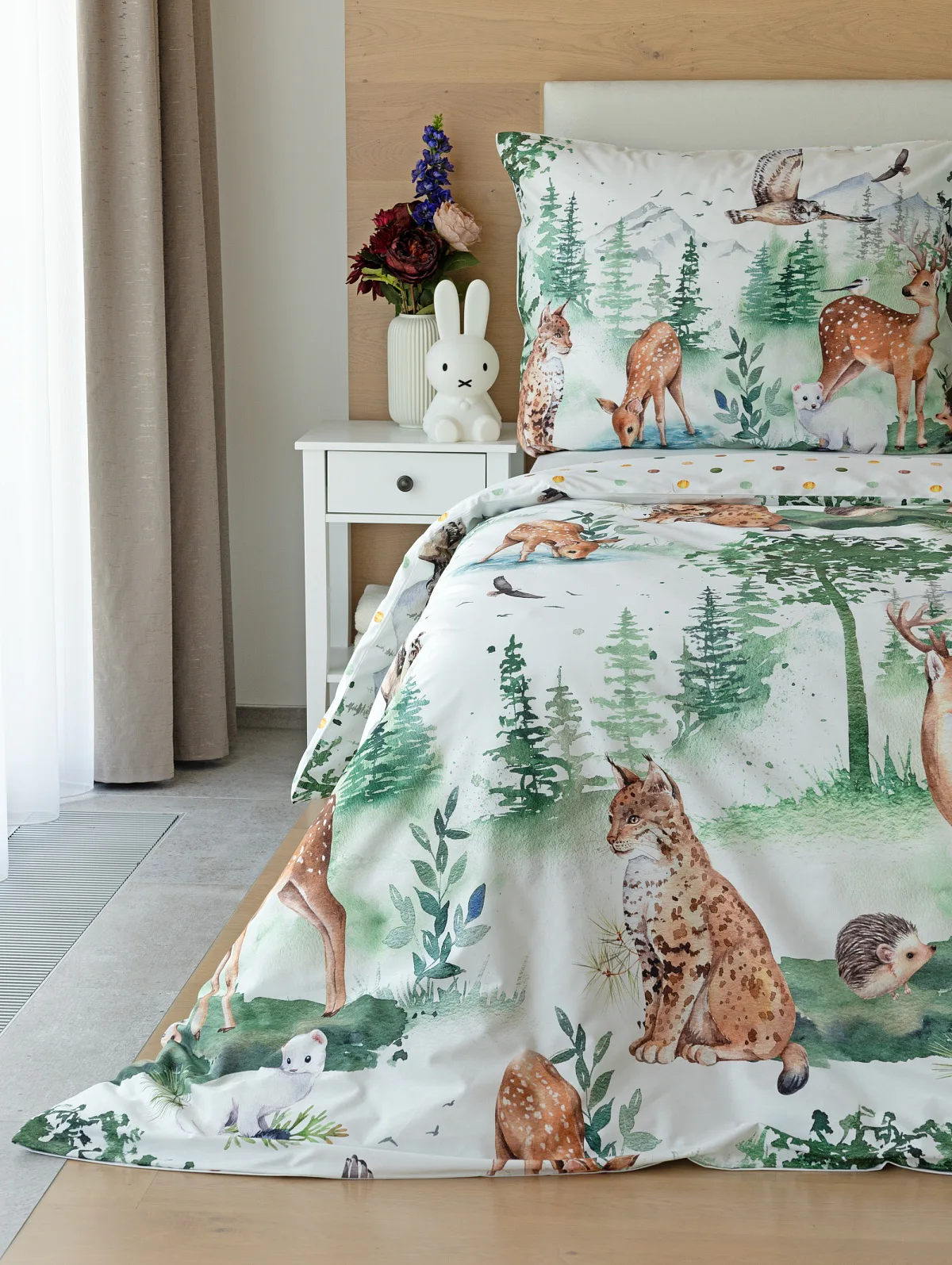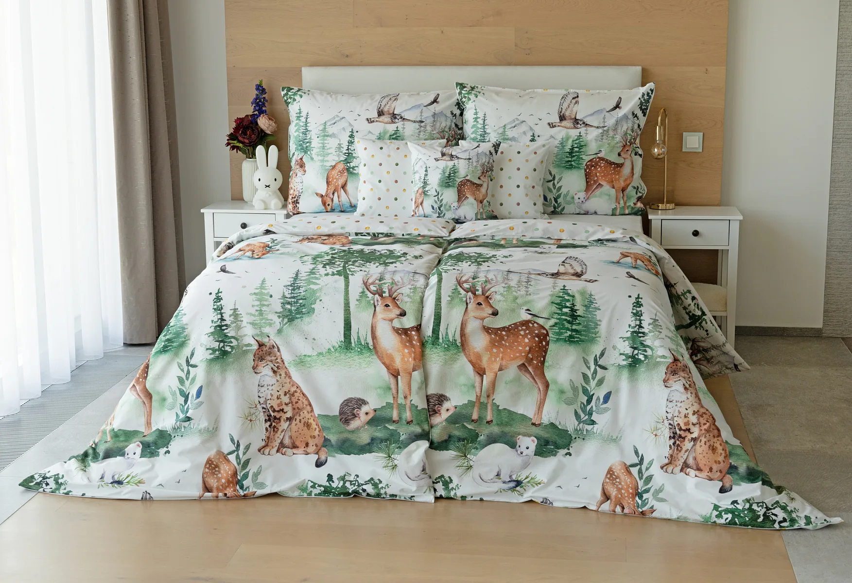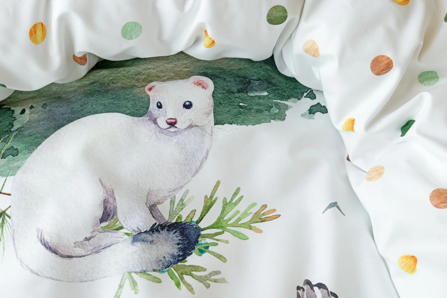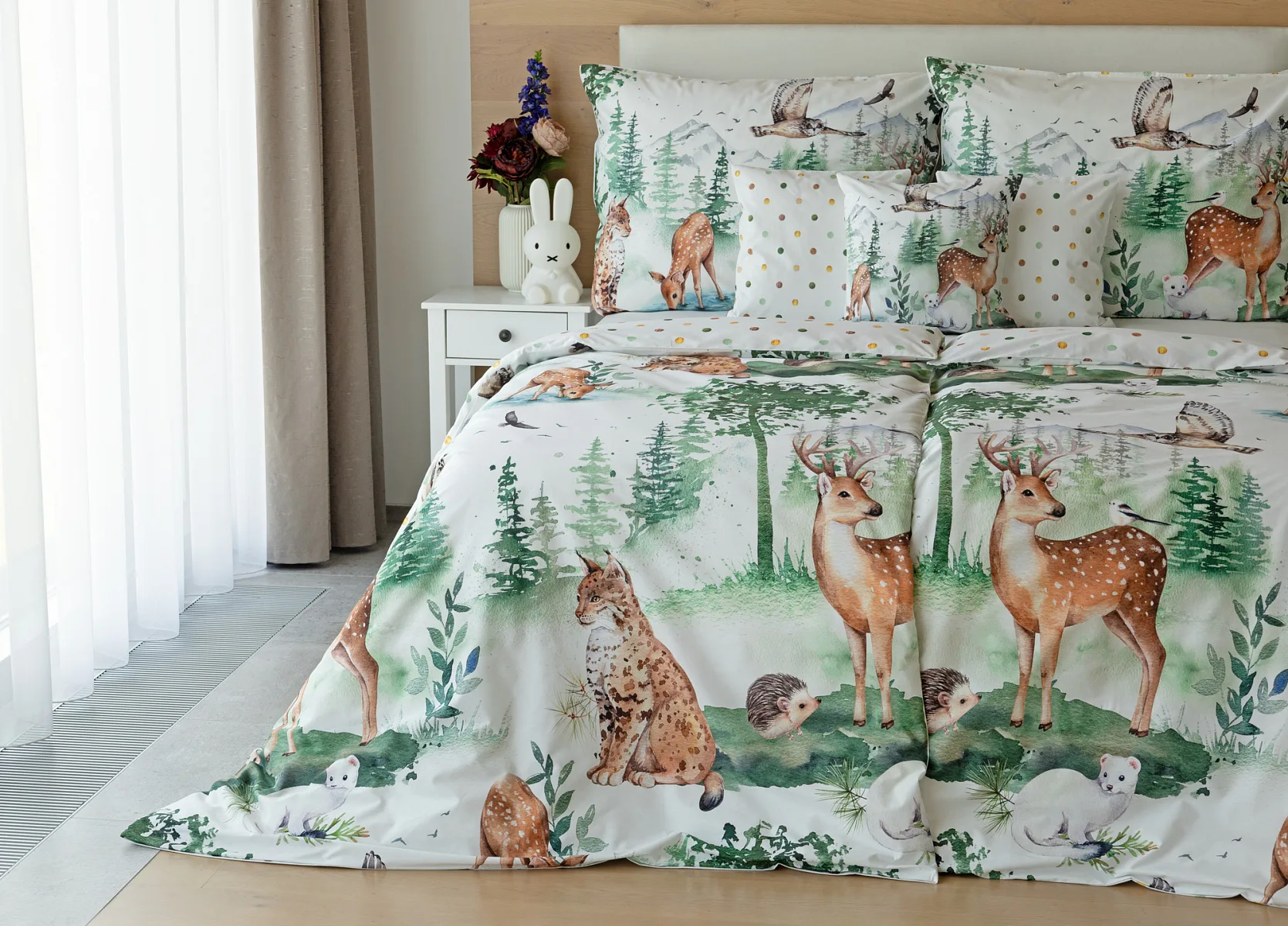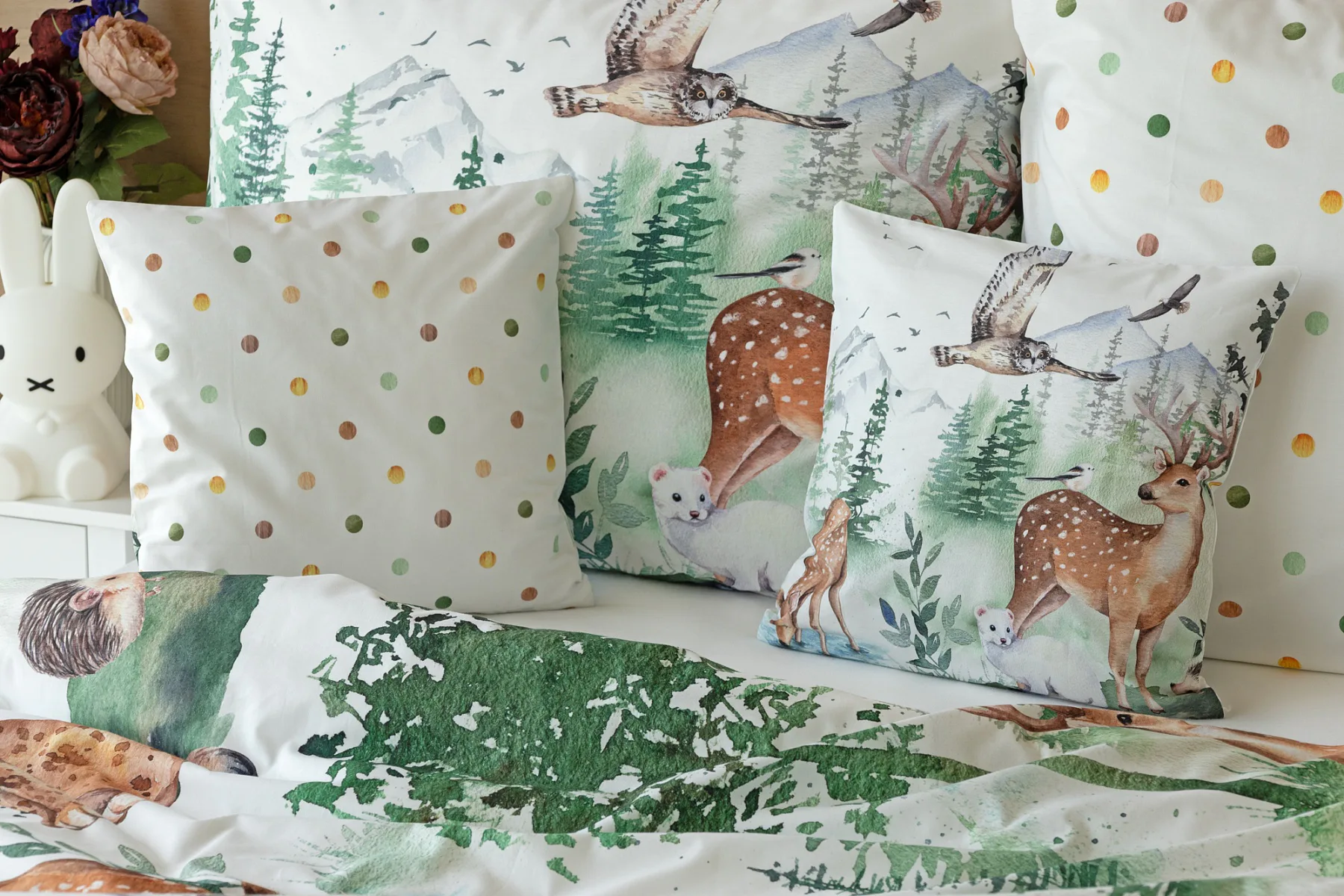 S bavlněným povlečením Wild se dětský pokojíček promění v útulnou říši lesních zvířátek, o kterých můžete před spaním vyprávět příběhy. Podkladem tohoto vzoru se stala ruční malba, která vyniká na povlečení v precizním detailu díky nejmodernějšímu digitálnímu tisku. Vaše děti budou spokojeně snít díky vysoce kvalitnímu materiálu z výběrové 100% bavlny.