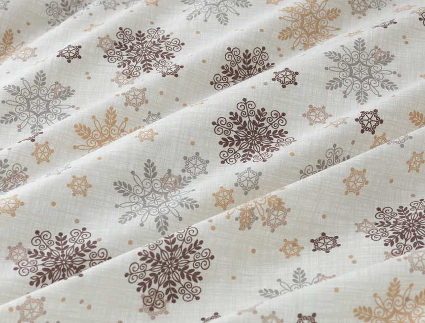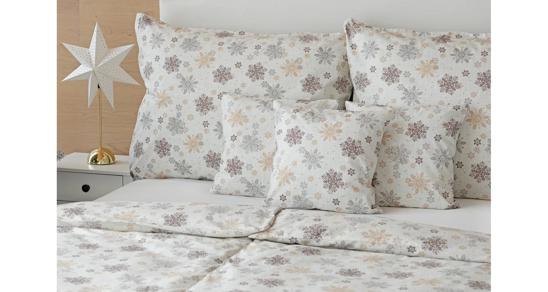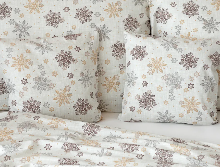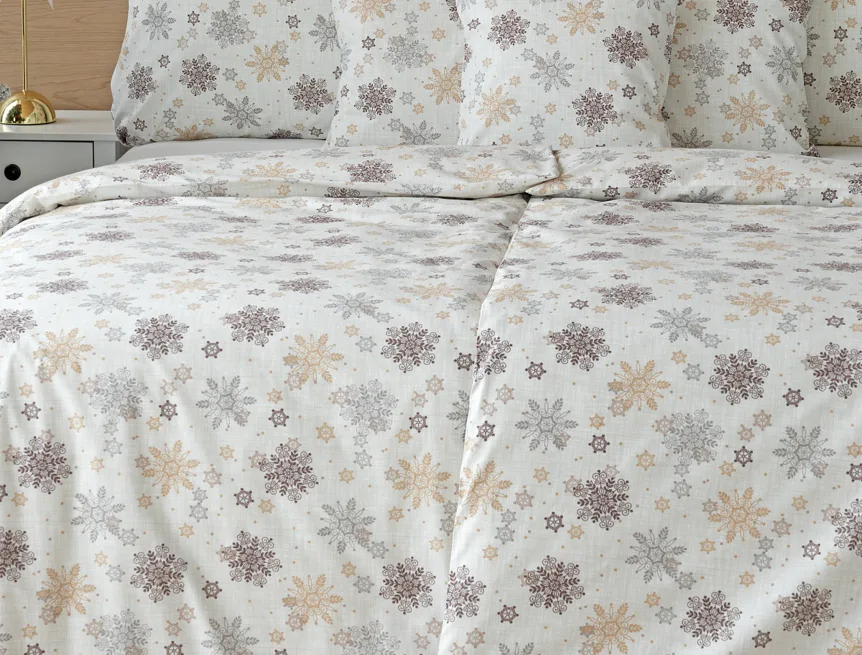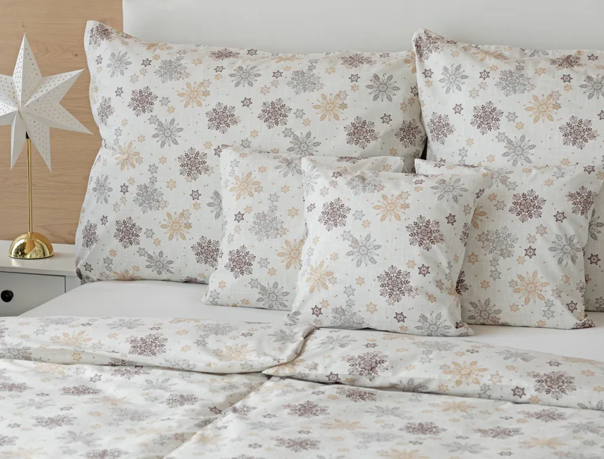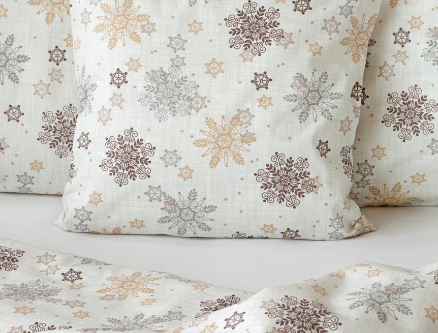 Vánoční povlečení Winter Glow se stane okouzlujícím svátečním klenotem vaší ložnice. Povlečení zdobí po celé ploše menší a větší sněhové vločky v paletě hnědých a šedých tónů. Na světlém podkladu je lehce patrná plátnová struktura, která dodává ložnímu povlečení rustikální nádech. Nechte se hýčkat a zachumlejte se do měkoučkého prémiového flanelu nebo do jemné bavlny deluxe.