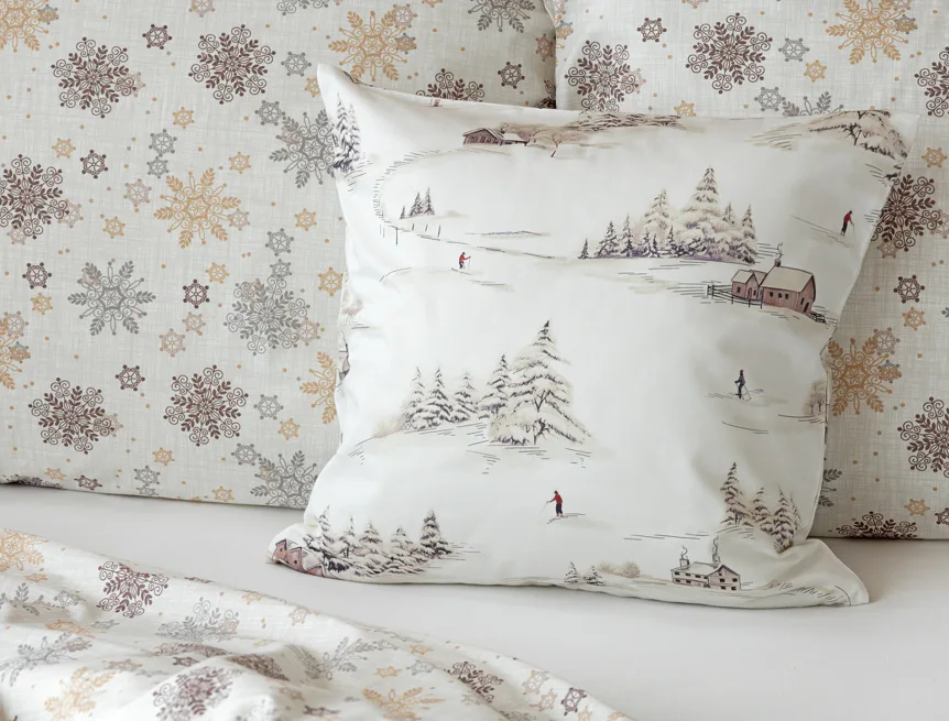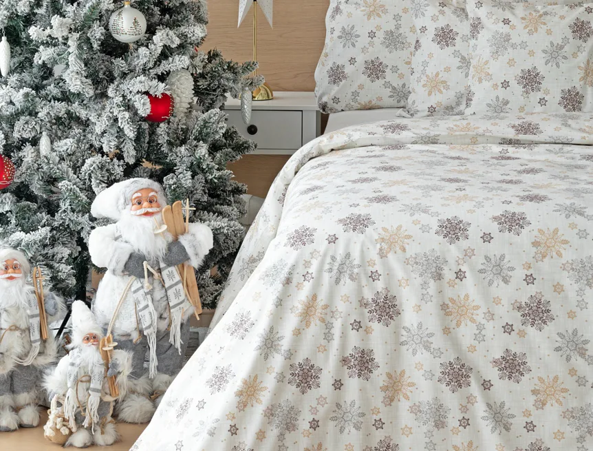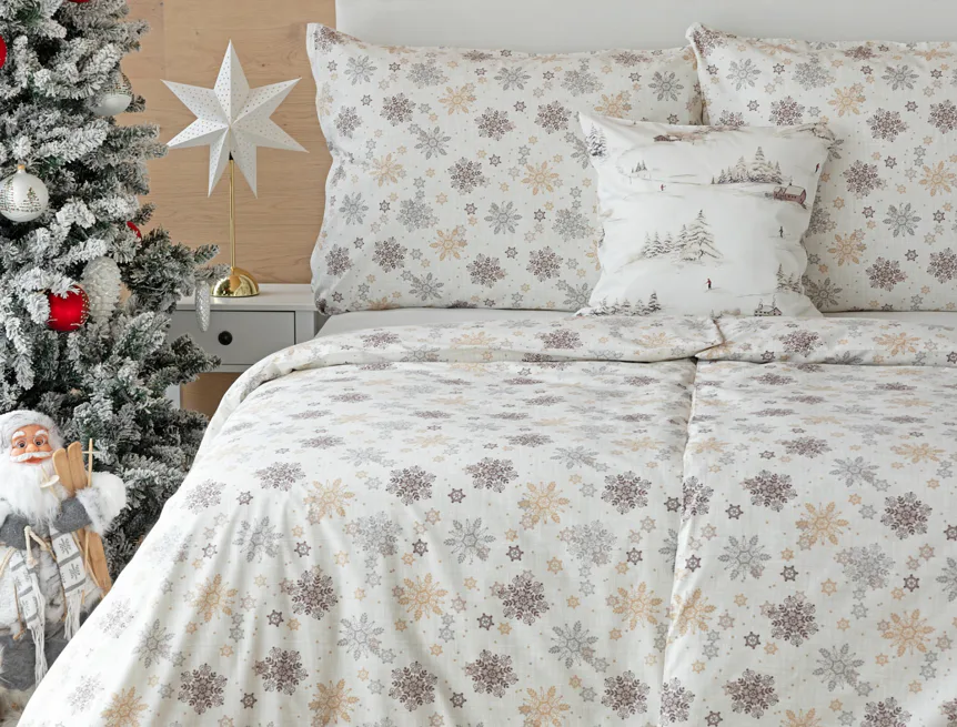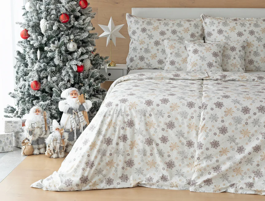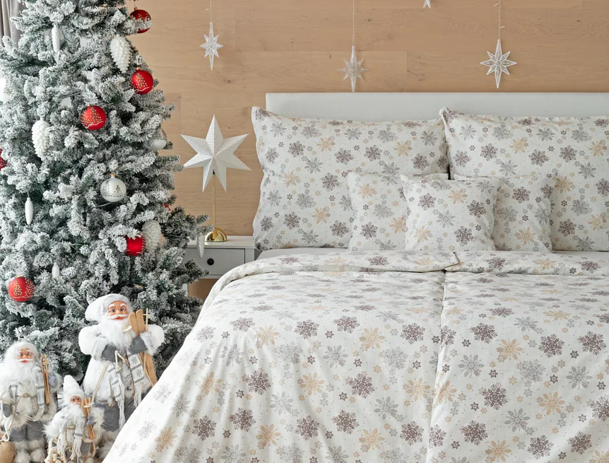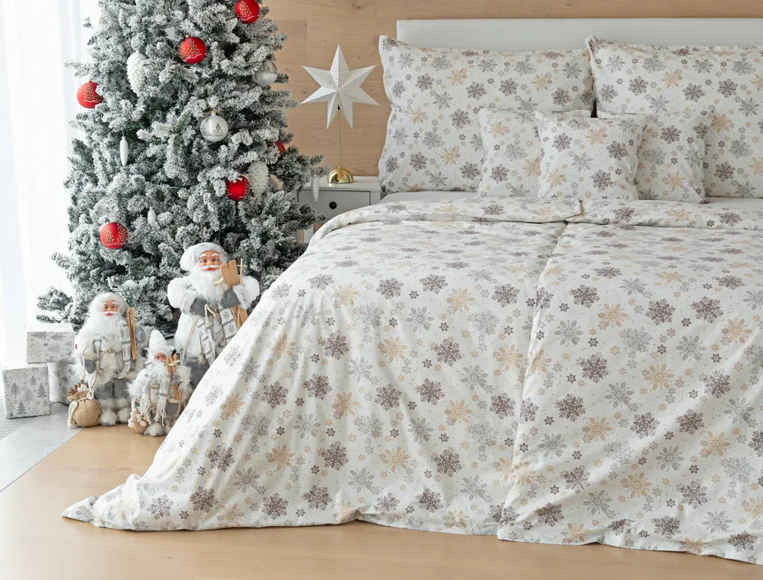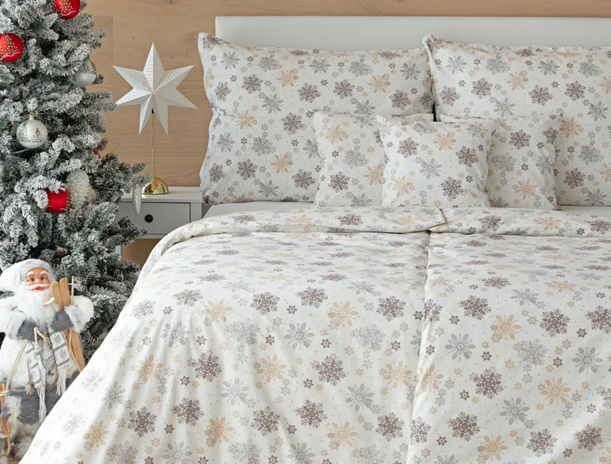 Vánoční povlečení Winter Glow se stane okouzlujícím svátečním klenotem vaší ložnice. Povlečení zdobí po celé ploše menší a větší sněhové vločky v paletě hnědých a šedých tónů. Na světlém podkladu je lehce patrná plátnová struktura, která dodává ložnímu povlečení rustikální nádech. Nechte se hýčkat a zachumlejte se do měkoučkého prémiového flanelu nebo do jemné bavlny deluxe.