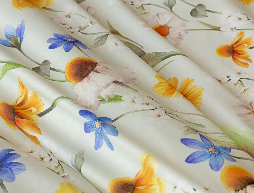 Dopřejte své ložnici svěží nádech s bavlněným povlečením Zaria. Směsice lučního kvítí v odstínech žluté, oranžové a fialovomodré barvy vyniká na decentním podkladu v tlumeném zeleném tónu. Díky nejmodernějšímu digitálnímu tisku vyniká vzor v precizním detailu.
