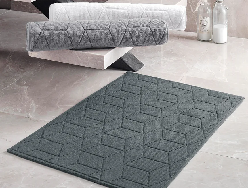 Nepostradatelný doplněk každé koupelny v provedení výběrové bavlny s vysokou gramáží, která zajistí nezaměnitelný komfort. Jednoduchý vytkávaný geometrický vzor na koupelnové předložce v kombinaci s dokonalým odstínem antracitově šedé barvy zútulní vaši koupelnu.
