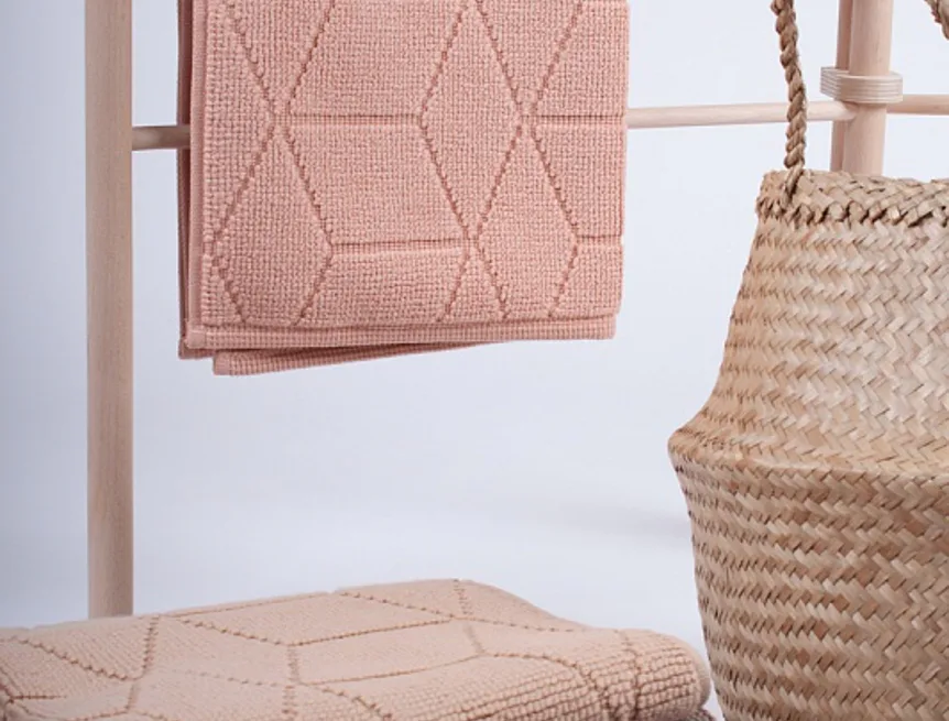 Nepostradatelný doplněk každé koupelny v provedení výběrové bavlny s vysokou gramáží, která zajistí nezaměnitelný komfort. Jednoduchý vytkávaný geometrický vzor na koupelnové předložce v kombinaci s teplým krémovým odstínem oříškového kapučína zútulní vaši koupelnu.