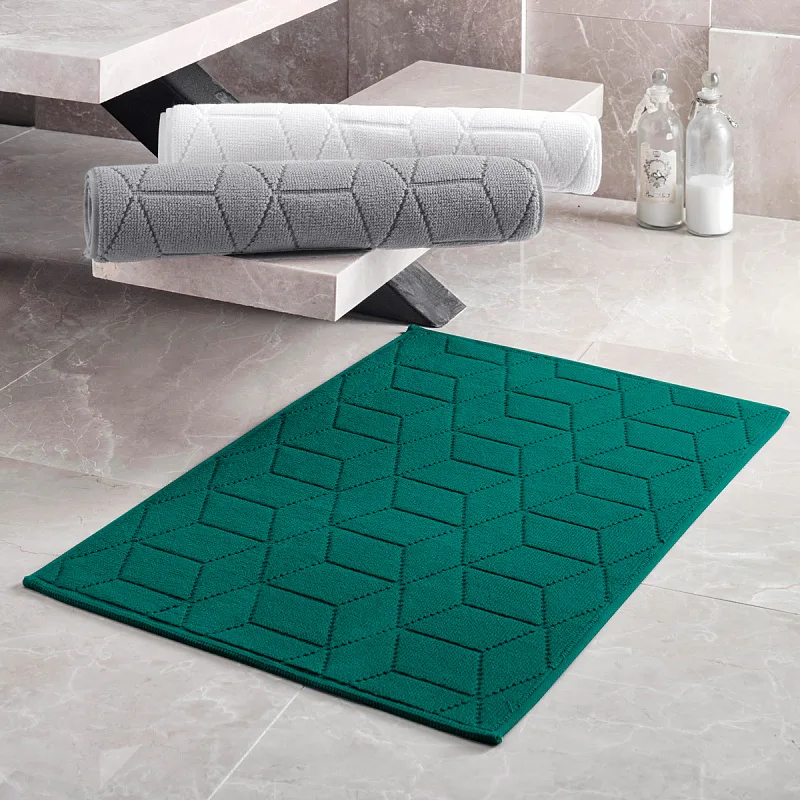 Nepostradatelný doplněk každé koupelny v provedení výběrové bavlny s vysokou gramáží, která zajistí nezaměnitelný komfort. Jednoduchý vytkávaný geometrický vzor na koupelnové předložce v kombinaci s dokonalým odstínem petrolejové barvy zútulní vaši koupelnu.