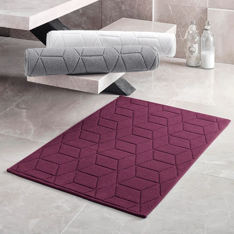 Nepostradatelný doplněk každé koupelny v provedení výběrové bavlny s vysokou gramáží, která zajistí nezaměnitelný komfort. Jednoduchý vytkávaný geometrický vzor na koupelnové předložce v kombinaci s dokonalým odstínem tmavě fialové barvy zútulní vaši koupelnu.