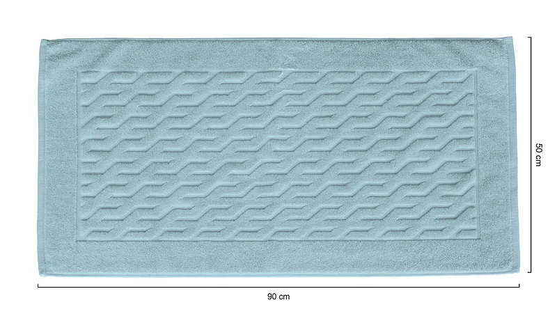 Nepostradatelný doplněk každé koupelny v provedení výběrové bavlny o vysoké gramáži, která zajistí nezaměnitelný komfort. Jednoduchý geometrický vzor na koupelnové předložce v kombinaci s dokonalým odstínem šedomodré pastelové barvy zútulní vaši koupelnu.