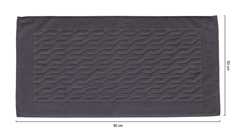 Nepostradatelný doplněk každé koupelny v provedení výběrové bavlny o vysoké gramáži, která zajistí nezaměnitelný komfort. Jednoduchý geometrický vzor na koupelnové předložce v kombinaci s dokonalým odstínem šedofialové kovové barvy zútulní Vaši koupelnu.