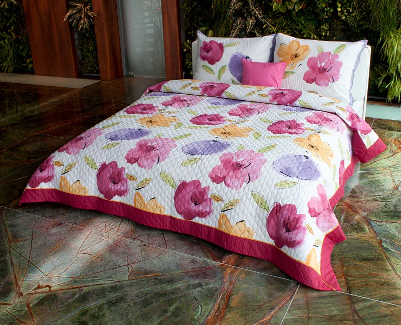 Přehoz EDEN je jedinečný, estetický a praktický doplněk, se kterým bude Vaše postel vždy dokonale ustlaná. Jako výplň je použito vrstvené duté vlákno, povrchový materiál je 100% bavlněná látka, ve stejném dezénu jako ložní povlečení. Po celé ploše je aplikováno ozdobné prošití, tak aby se zajistila stabilita výplně a současně podtrhl celkový vzhled přehozu.