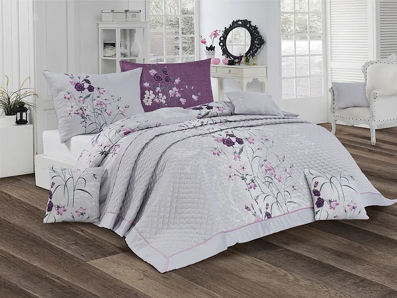 Přehoz přes postel MELANIE je jedinečný, estetický a praktický doplněk, se kterým bude Vaše postel vždy dokonale ustlaná. Jako výplň je použito vrstvené duté vlákno, povrchový materiál je 100% bavlněná látka, ve stejném dezénu jako ložní povlečení. Po celé ploše je aplikováno ozdobné prošití tak, aby se zajistila stabilita výplně a současně podtrhl celkový vzhled přehozu.