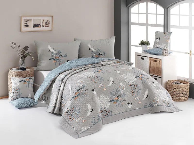 Přehoz Minori je jedinečný estetický a praktický doplněk, se kterým bude postel vždy dokonale ustlaná. Jako výplň je použito vrstvené duté vlákno, povrchový materiál je 100% bavlněná látka, ve stejném dezénu jako ložní povlečení. Po celé ploše je aplikováno ozdobné prošití, aby se zajistila stabilita výplně a současně podtrhl celkový vzhled přehozu.