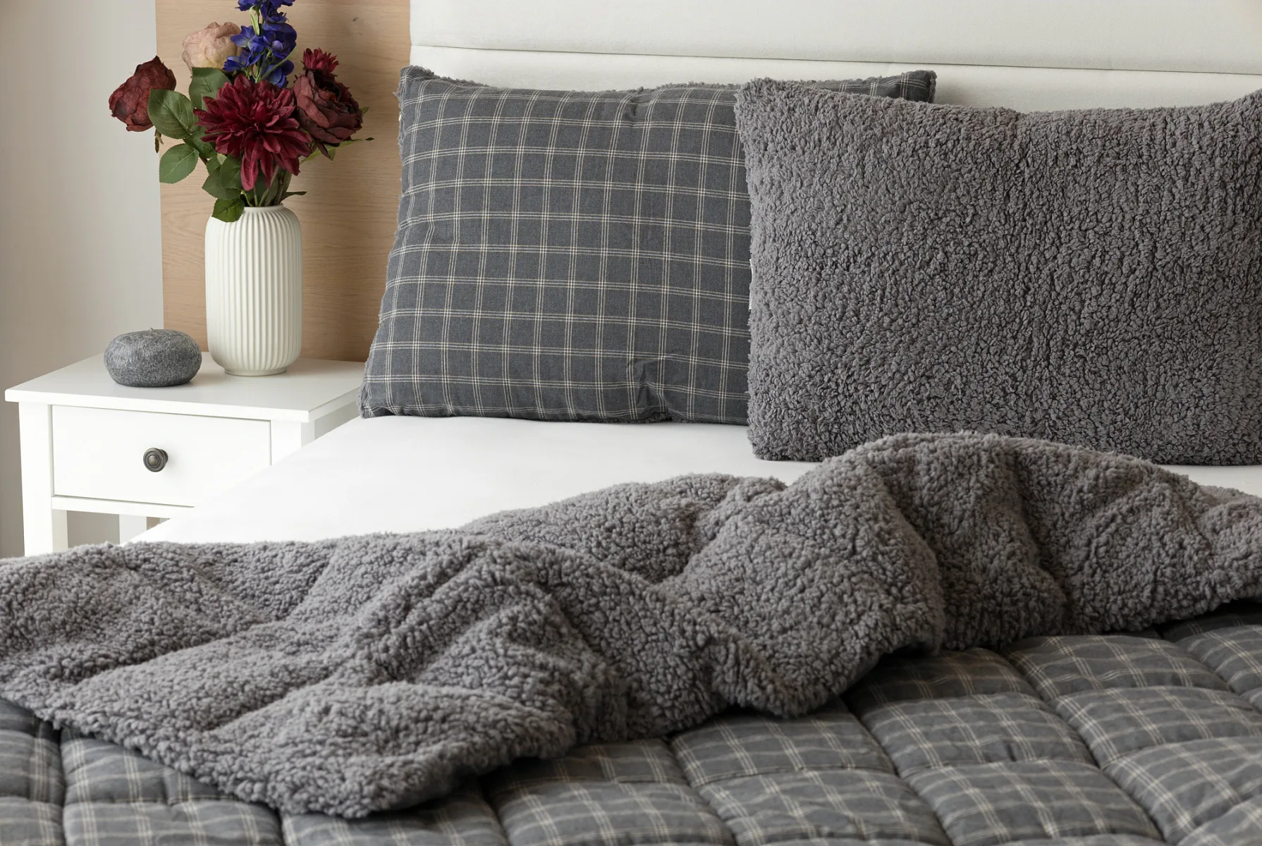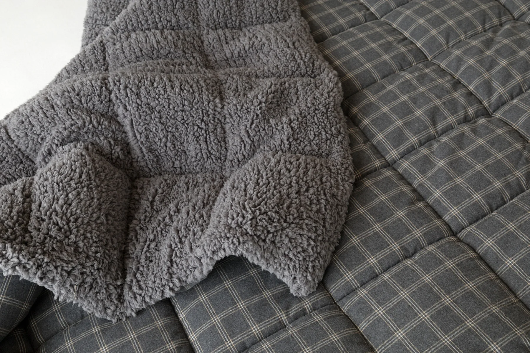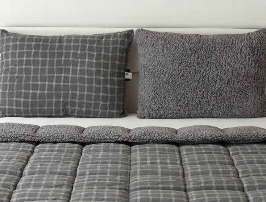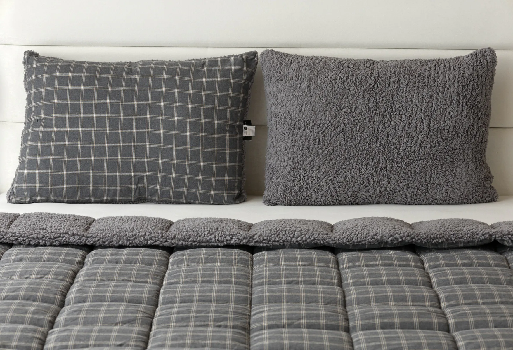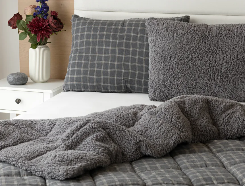 Nová kolekce prošívaných flanelových přikrývek s beránkem vám zajistí jedinečný tepelný komfort a úžasné pohodlí během sychravých dnů, chladných večerů a zimních nocí. Vrchní stranu prošívané deky tvoří hebký flanel s jemným chloupkem, spodní stranu pokrývá hřejivý nadýchaný beránek. Vnitřní výplň s plošnou gramáží 250 g/m2 tvoří mikrogelové polyesterové nano vlákno, které je prodyšné, lehké a nesléhá. Stabilitu výplně zajišťuje precizní prošití po celé ploše.