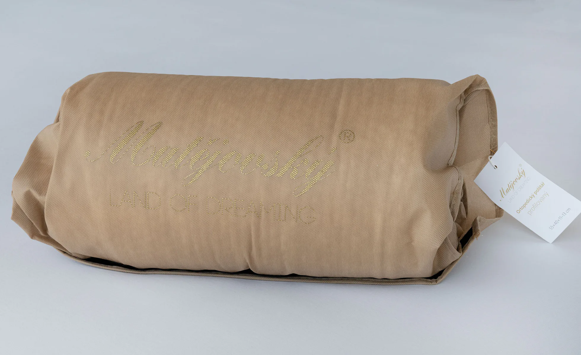 Balení: Anatomický polštář je balený v praktickém povlaku z netkané textilie, který vám umožní polštář znovu zabalit a uskladnit.