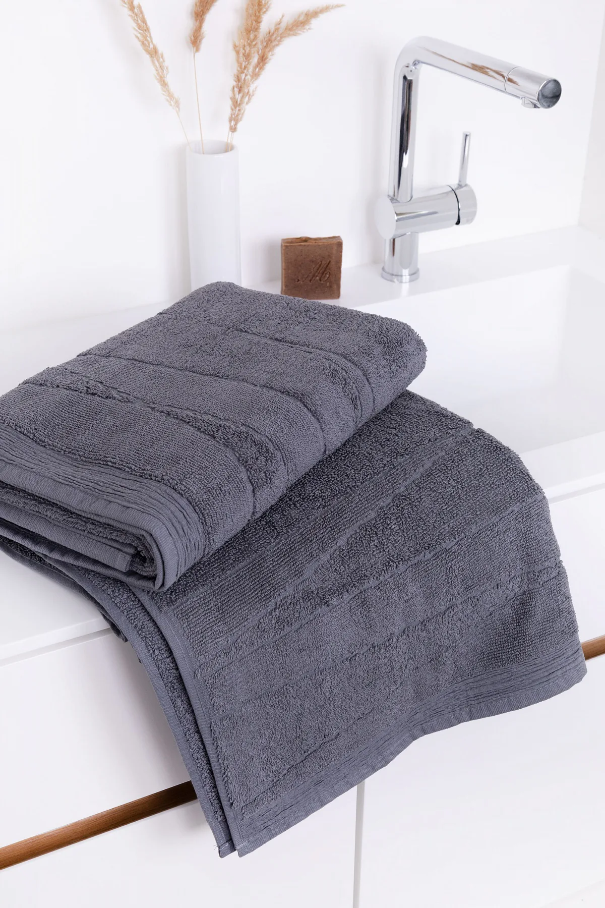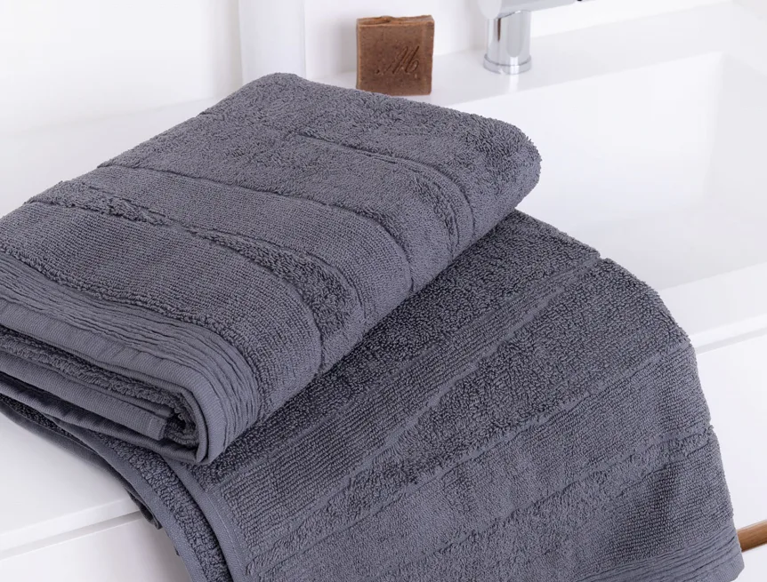 Privítajte vo svojej kúpeľni nový štýlový rad luxusných uterákov REY z česanej 100% bavlny.