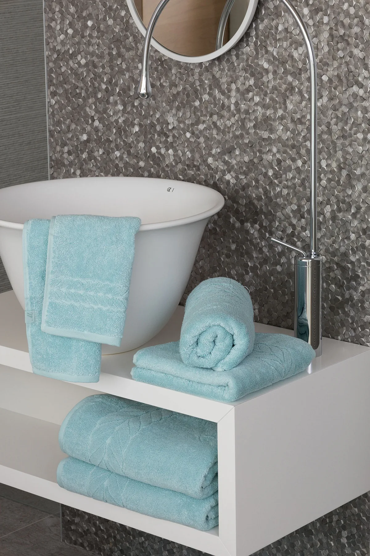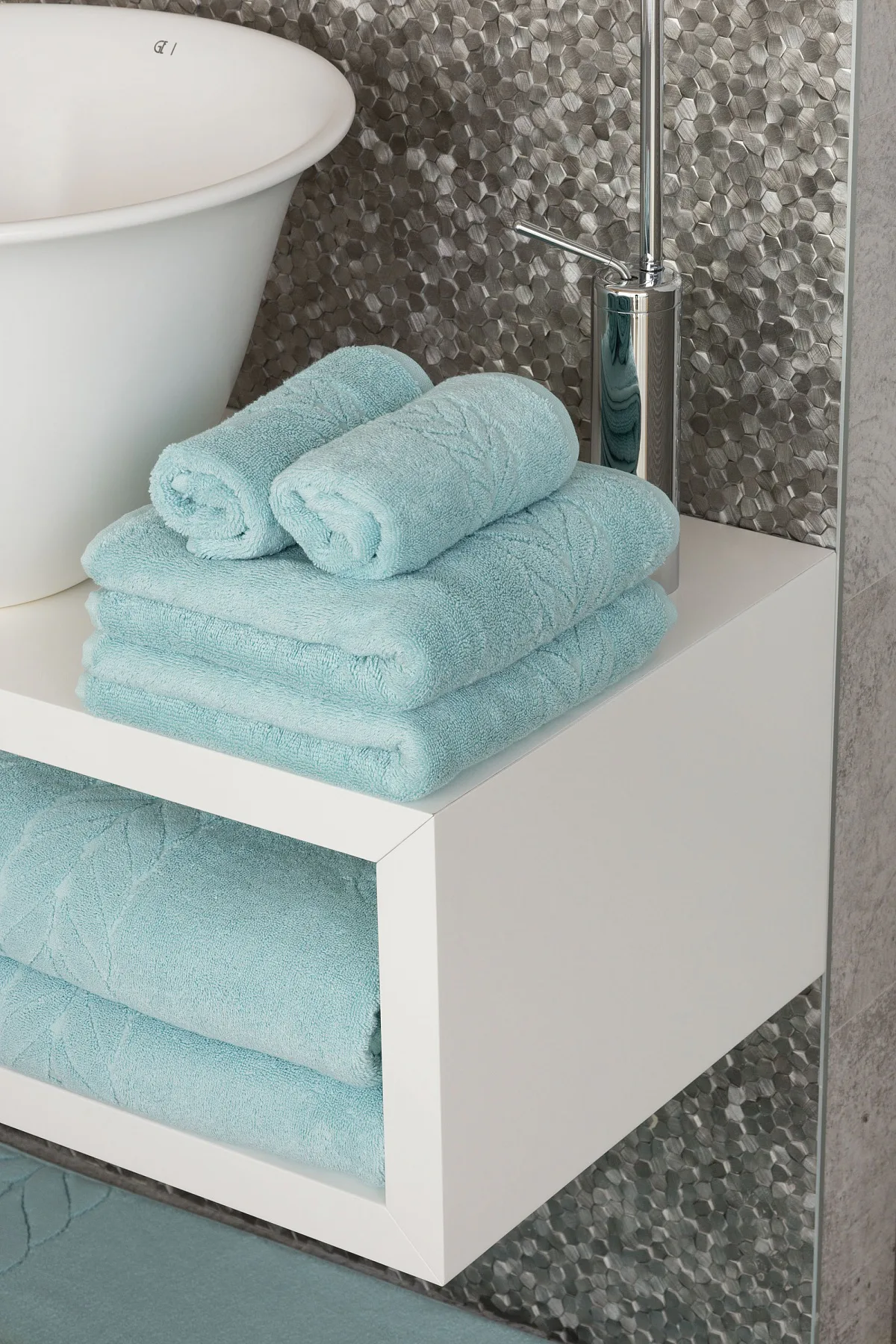 Tip: Barevné harmonie ve vaší koupelně můžete dosáhnout kombinací s bavlněnými koupelnovými předložkami Claris.