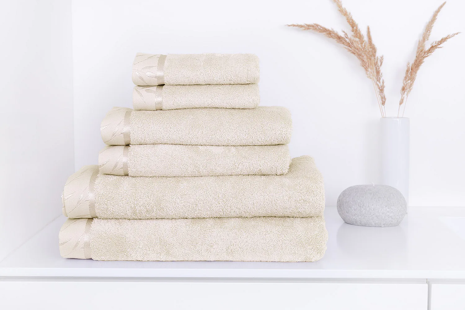 Pro kolekci ručníků a osušek Luna pečlivě vybíráme atraktivní odstíny. Noblesa této wellnes řady je dotažena k dokonalosti jemnou vyšívanou bordurou s motivem bambusových lístků.