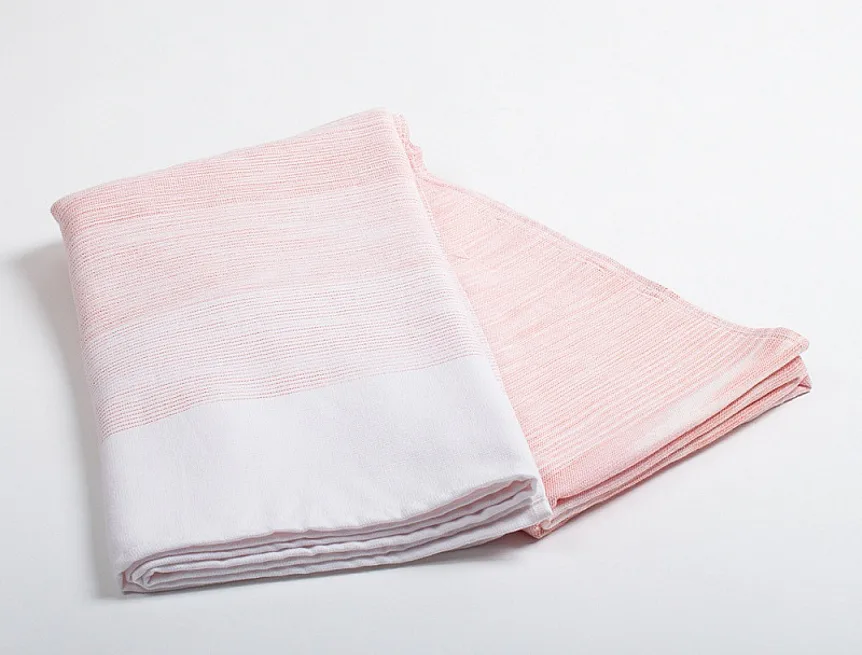 Saunová osuška Granada si vás získá nejen svojí praktičností, ale také jemným designem. Na vrchní hladké straně tvoří vytkané proužky decentní ombré efekt v pastelově oranžovo červených odstínech. Spodní strana osušky je ve znamení hebkého bílého froté, všechny okraje jsou lemované.