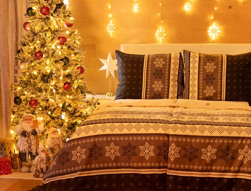 Tradičné sviatočné motívy v nápaditom prevedení vo vzore posteľných obliečok Scandic. Kombinácia hrejivých tónov šedej a antracitovej ide úžasne dokopy s krémovým podkladom. Vychutnajte si vianočný čas behom dňa aj noci s kvalitnými bavlnenými obliečkami.