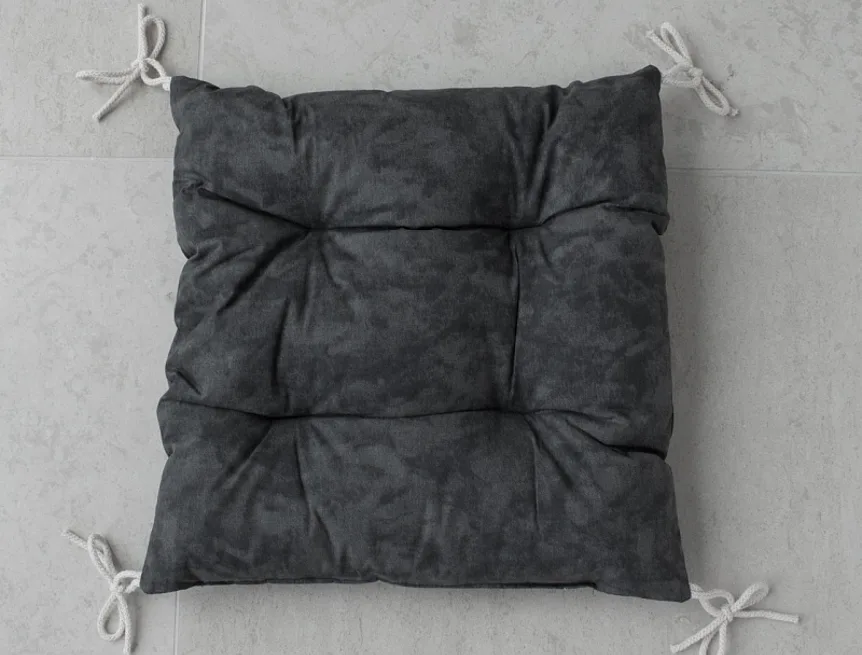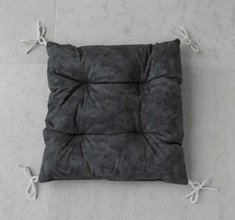 Pohodlný sedák s prošitím, opatřený v rozích tkaničkami pro praktické upevnění k židli. Barevné provedení tzv. mramorová šedá.