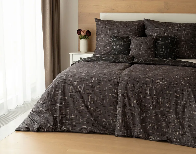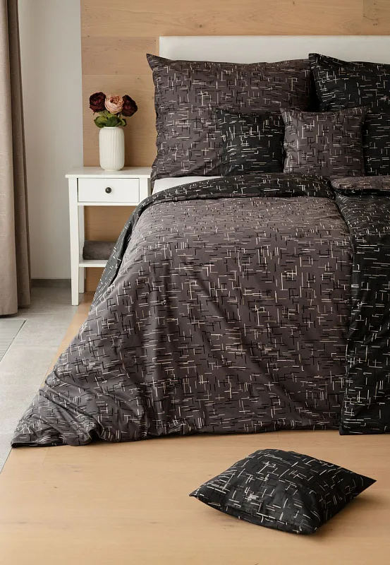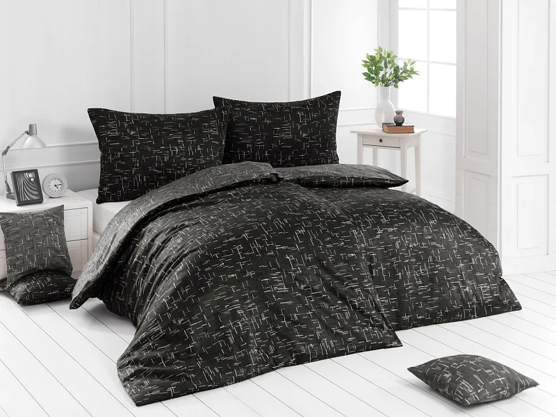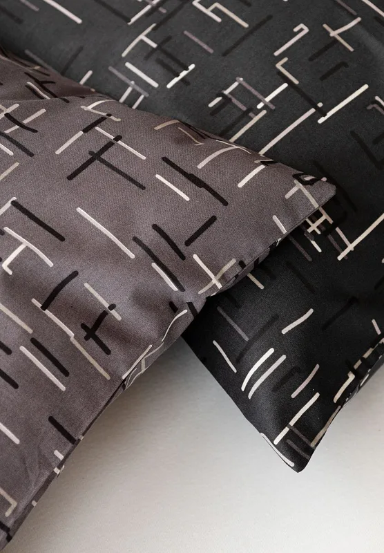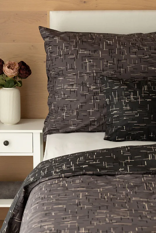 Elegantné obliečky Setter vám bude návšteva závidieť. Jednoduchý geometrický vzor, ktorý kombinuje čiernu a bielu s odtieňmi šedej, vyniká z jednej strany na stredne šedom podklade, druhá strana je tmavo antracitová.