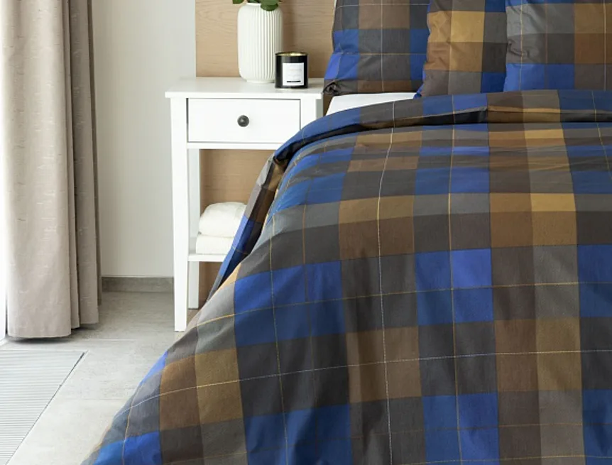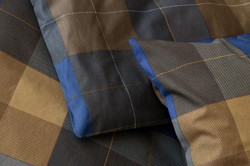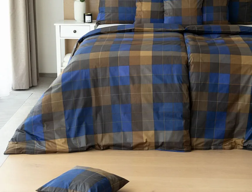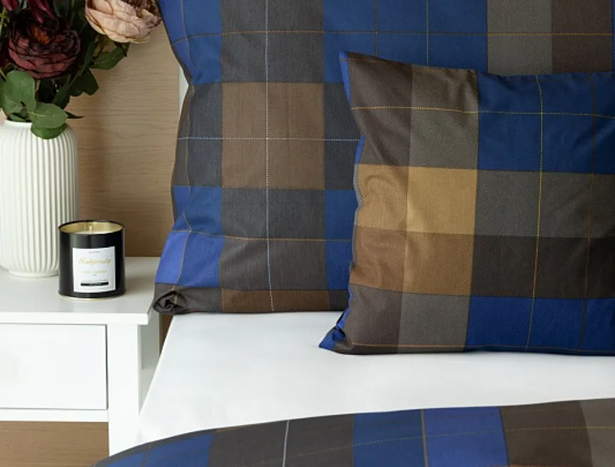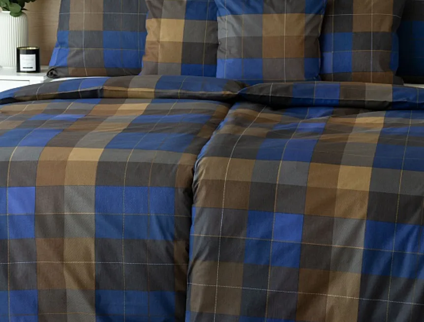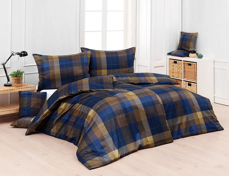 Bavlnené obliečky Shelby nesmú chýbať vo vašej výbave. Nadčasový kockovaný vzor v hrejivo hnedých a tmavomodrých tónoch vytvára pútavý celok, ktorý je nesmierne elegantný, praktický a vhodný do každej spálne.