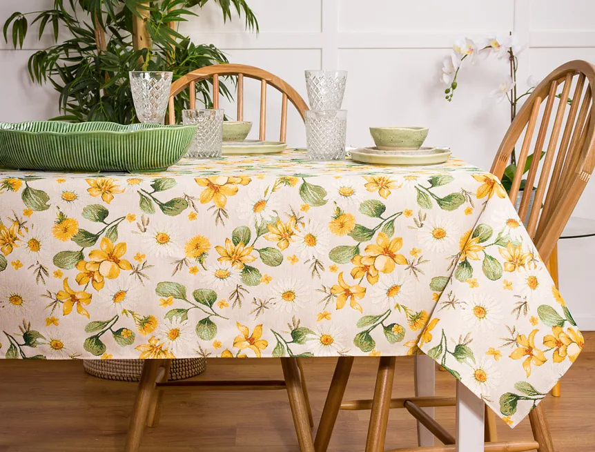 Obrus Solis s motívom lúčnych kvetov je ideálny doplnok pre každú príležitosť. Jemný design s rustikálnym nádychom sa spája s praktickosťou vďaka pevnému a odolnému materiálu.