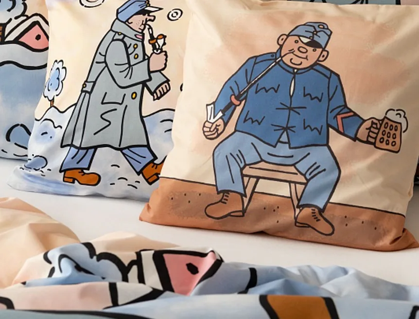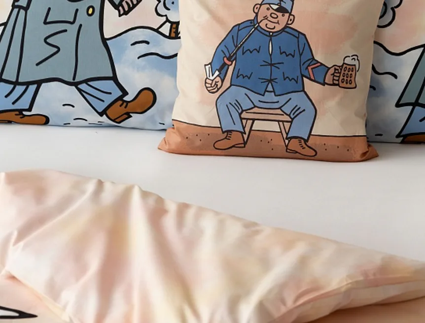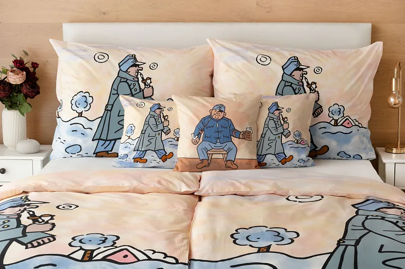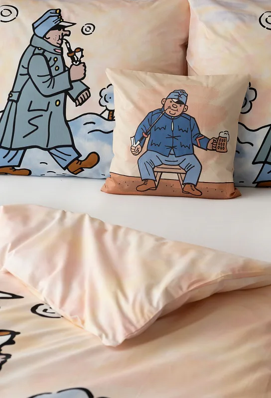 Bavlnené obliečky Švejk s fajkou potešia všetkých milovníkov českej tradície. Klasické dielo českej literatúry, ktoré je nerozlučne späté s ilustráciami Josefa Lady, ožíva na hebkej bavlne. Pripomeňte si osudy dobrého vojaka Švejka prostredníctvom luxusných obliečok a nechajte sa ukolísať ku krásnym snom.