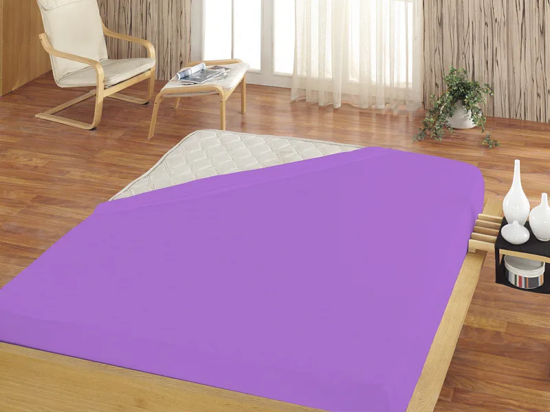 Prestieradlá sú šité na matrace s výškou až 25 cm. Svetlofialové prestieradlo ponúkame v týchto materiálových vyhotoveniach: