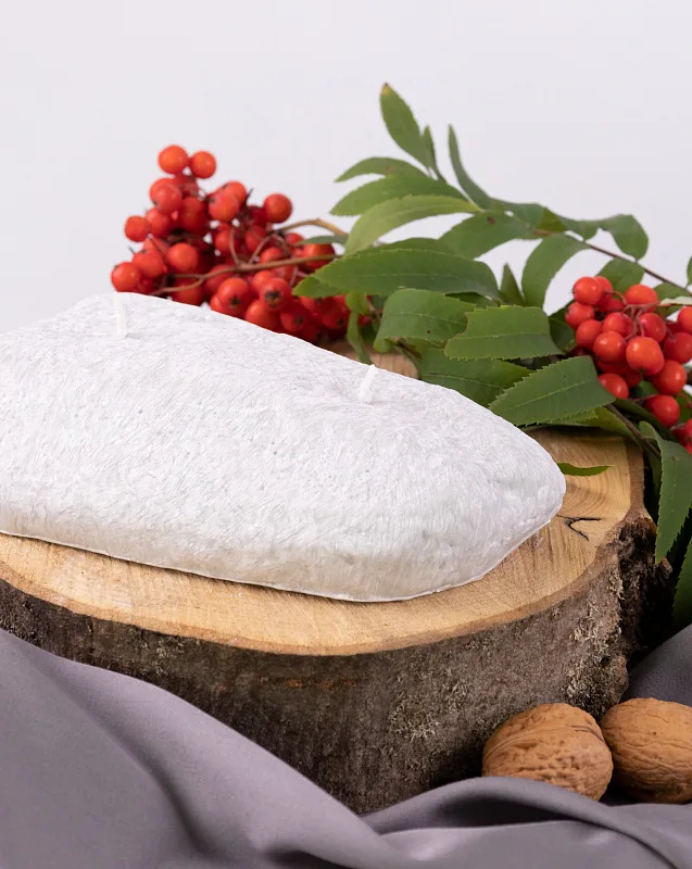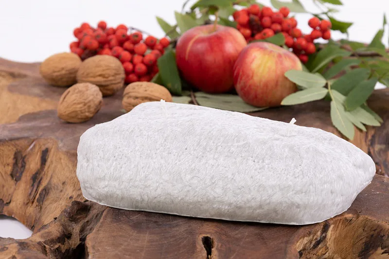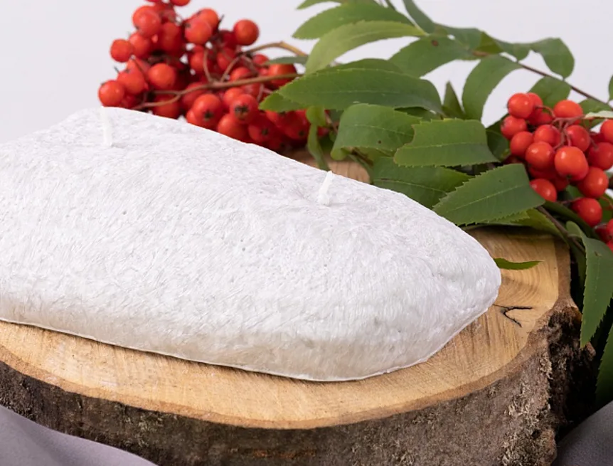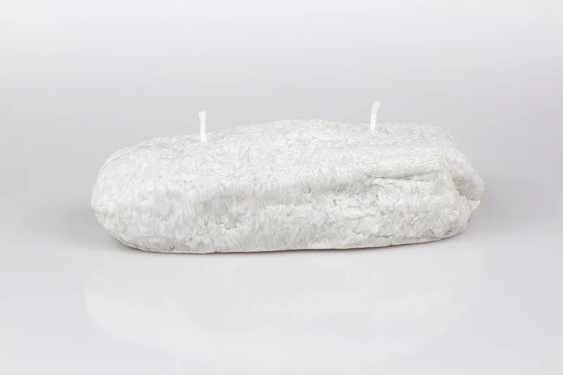 Ručně vyráběná svíčka ve tvaru oblého kamene světle šedé barvy s autentickou texturou je skvělým tipem na originální dárek.