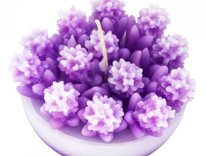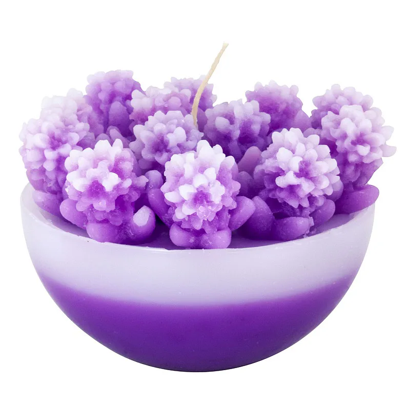Originální, ručně vyráběná svíčka ve tvaru misky s drobnými kvítečky v pastelovém odstínu fialkové barvy je skvělým tipem na dárek pro každou romantickou duši. Svíčka je dodávána v průhledném dárkovém balení.