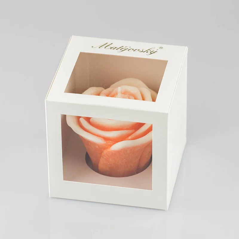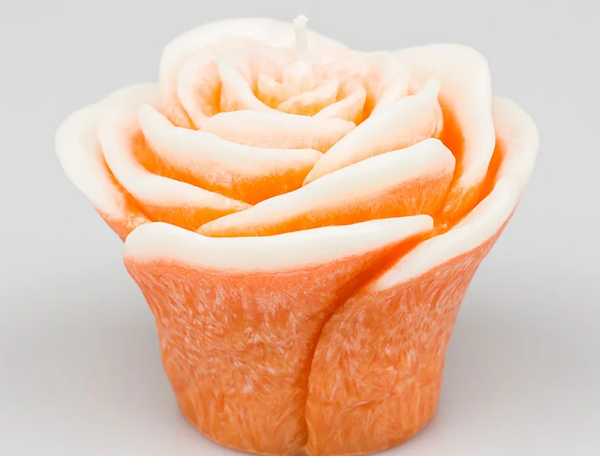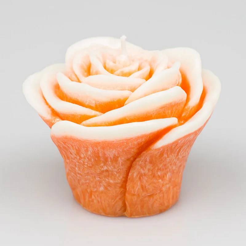 Ručně vyráběná svíčka ve tvaru květu růže v barvě oranžové, s jemnou mramorovanou texturou je skvělým tipem na dárek pro každou romantickou duši. Květinová svíčka je vyrobena z kvalitního palmového vosku s jedním bavlněným knotem, odhořívá plynule a nekouří. Originální vzhled svíčky je doplněn sladkou ovocnou vůní, která se uvolňuje hořením.