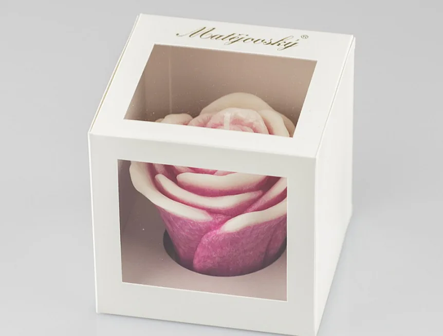 Ručně vyráběná svíčka ve tvaru květu růže v barvě růžové, s jemnou mramorovanou texturou je skvělým tipem na dárek pro každou romantickou duši. Květinová svíčka je vyrobena z kvalitního palmového vosku s jedním bavlněným knotem, odhořívá plynule a nekouří. Originální vzhled svíčky je doplněn sladkou ovocnou vůní, která se uvolňuje hořením.