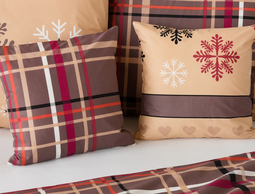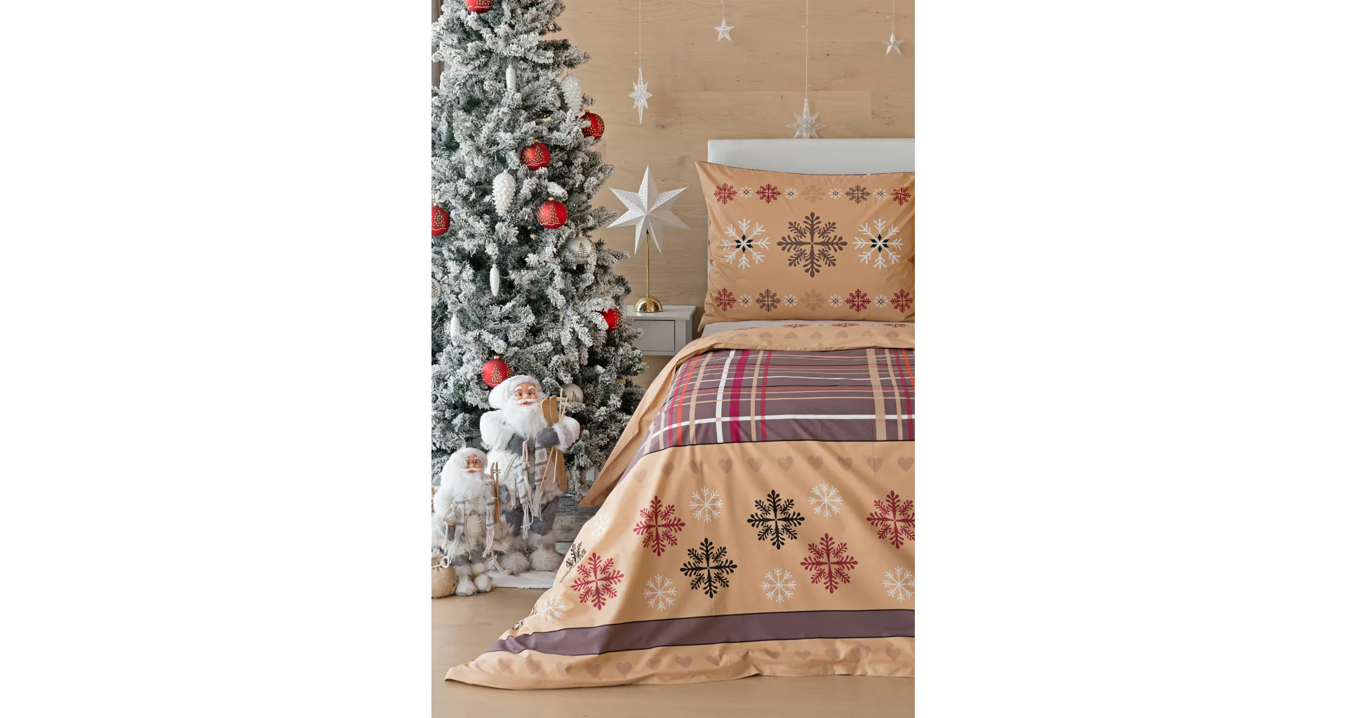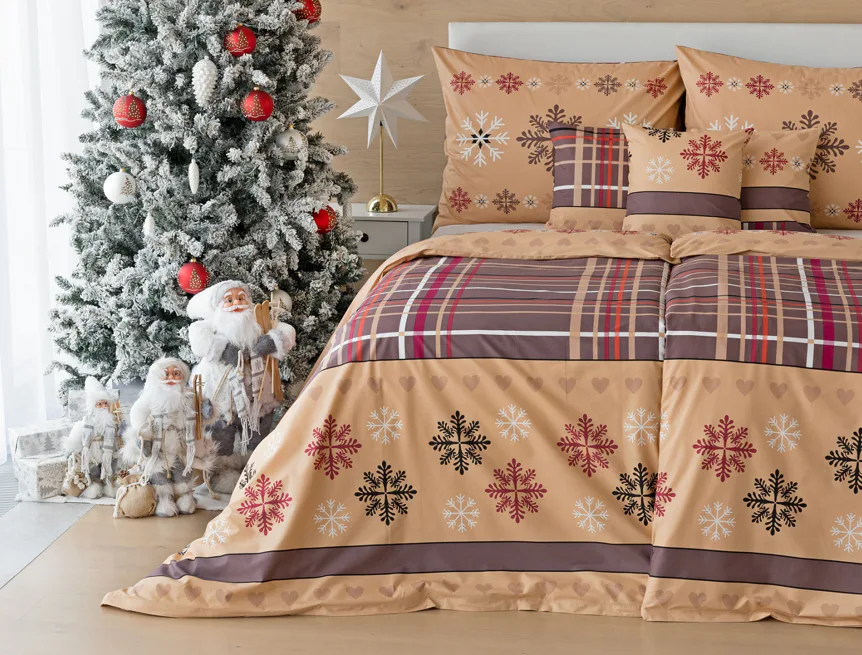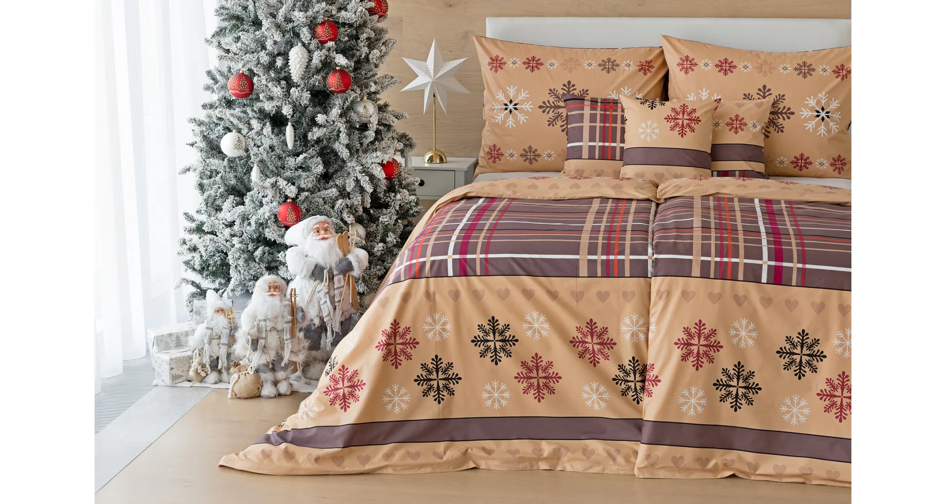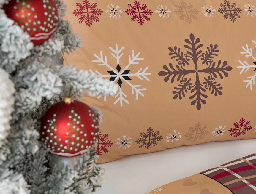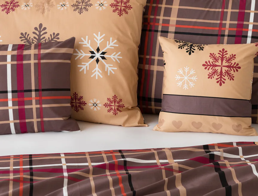 Atraktívny vianočný vzor v hrejivých tónoch lieskovoorieškovej a nugátovo hnedej prinášajú posteľné obliečky Tinsel. Vďaka nápaditému spojeniu motívov môžete pri stlaní každý deň experimentovať a vychutnávať si sviatočnú atmosféru. O váš pohodlný spánok sa postará luxusný flanel premium vyrobený zo 100% bavlny.