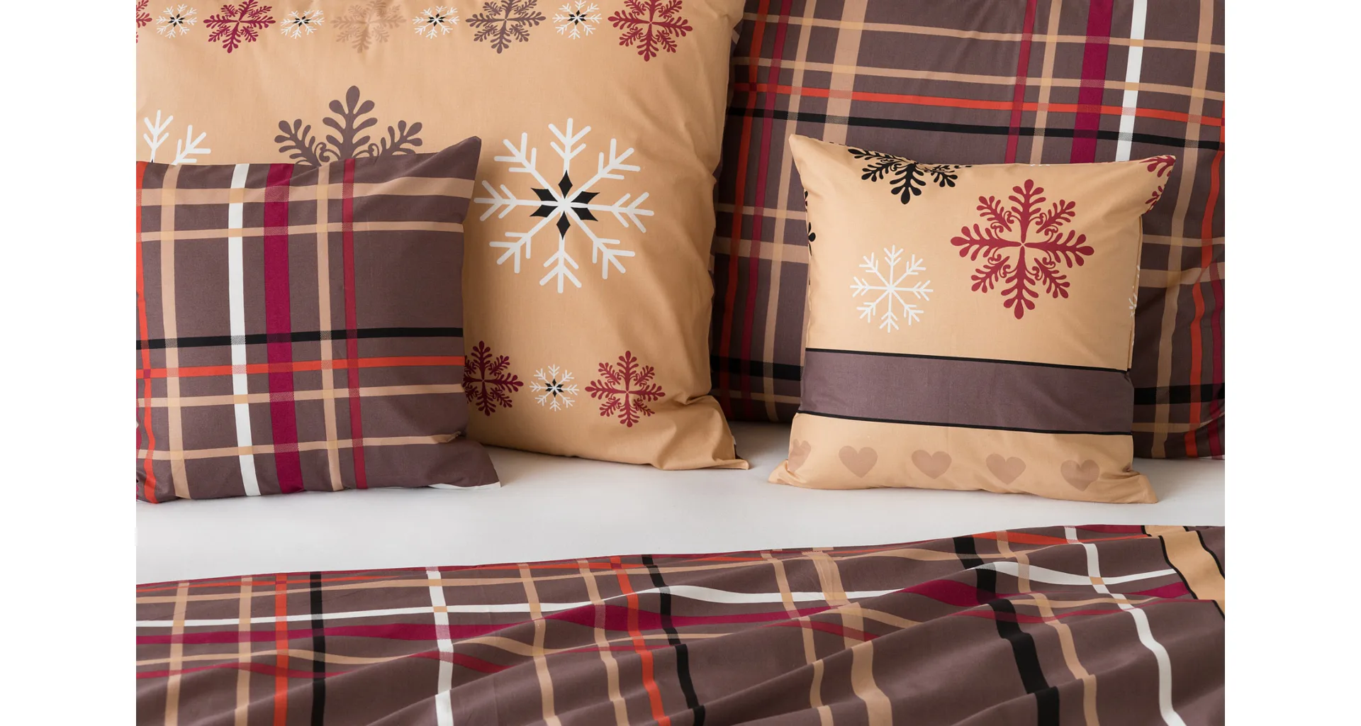 Obliečka na prikrývku je z oboch strán rovnaká, obliečka na vankúš má na spodnej strane károvaný motív s nugátovo hnedým podkladom. Obliečky sú opatrené komfortným zipsovým uzáverom.