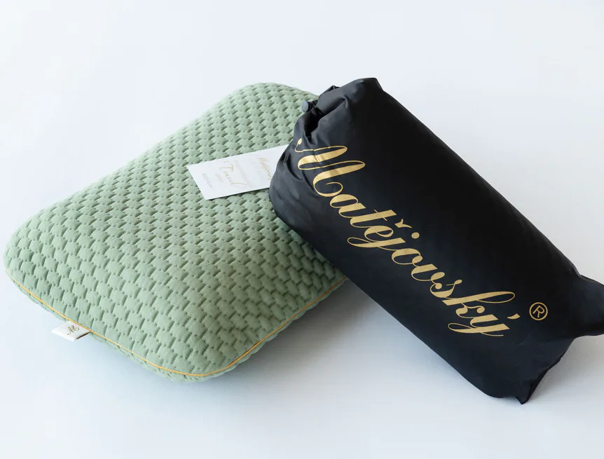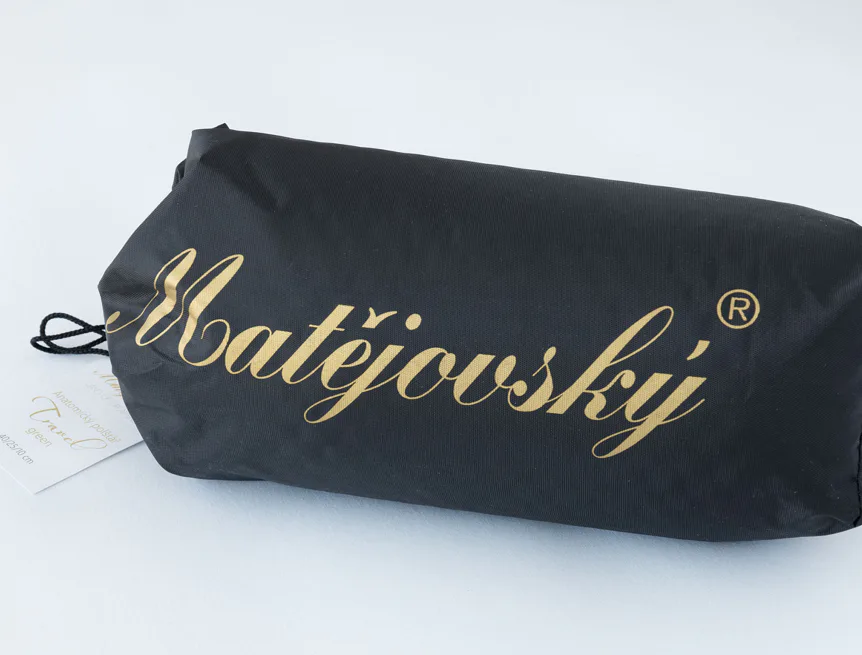 Balení: Anatomický polštář je balený v praktickém cestovním sáčku černé barvy s logem Matějovský.