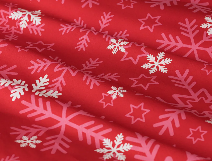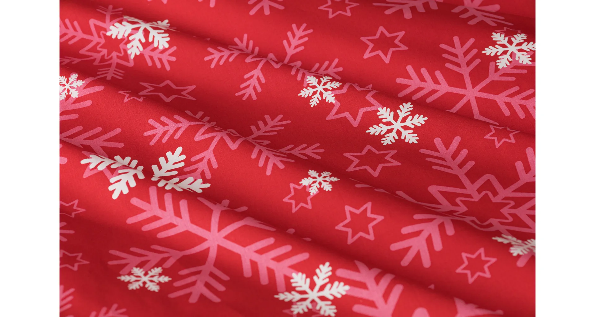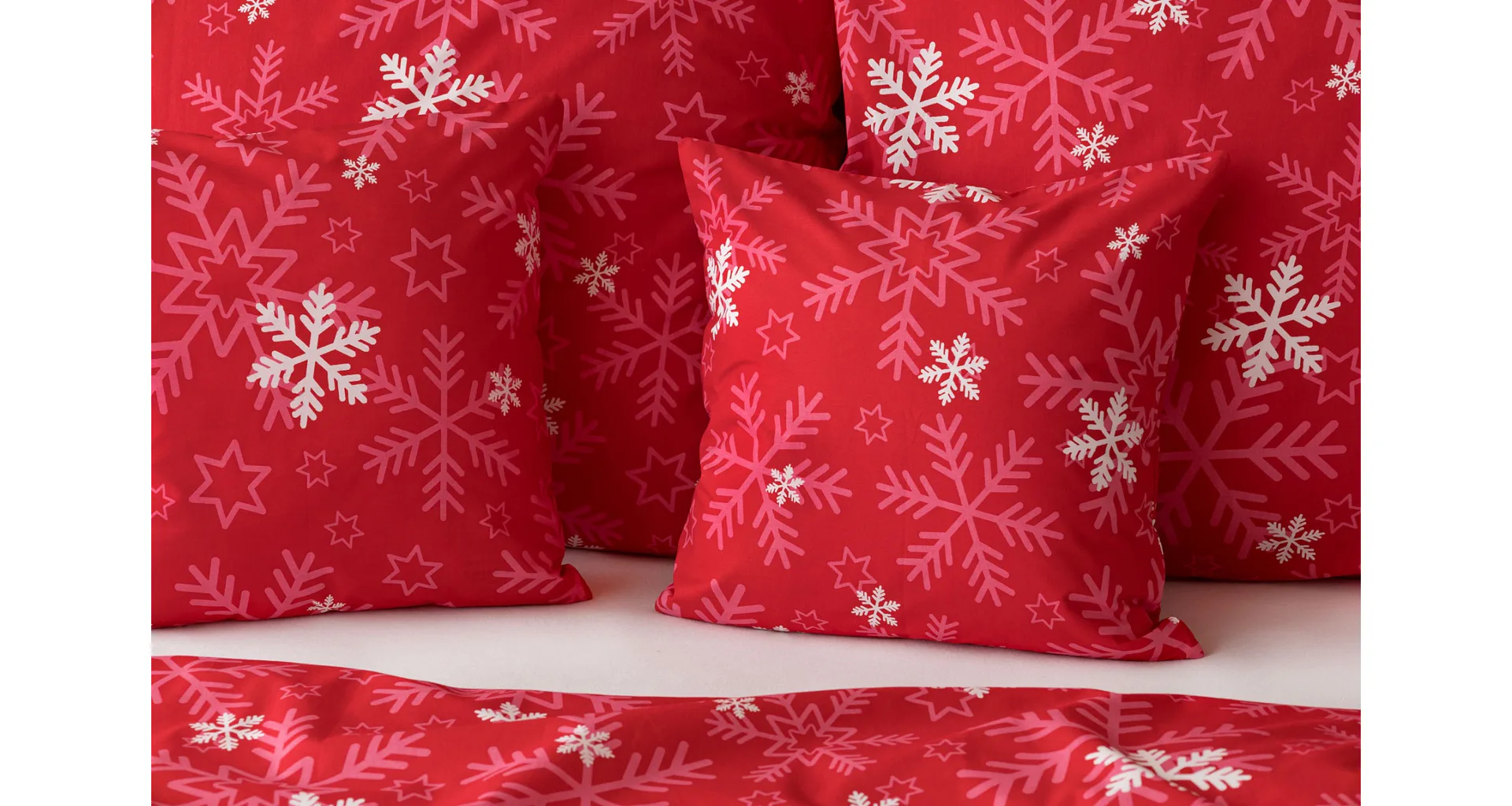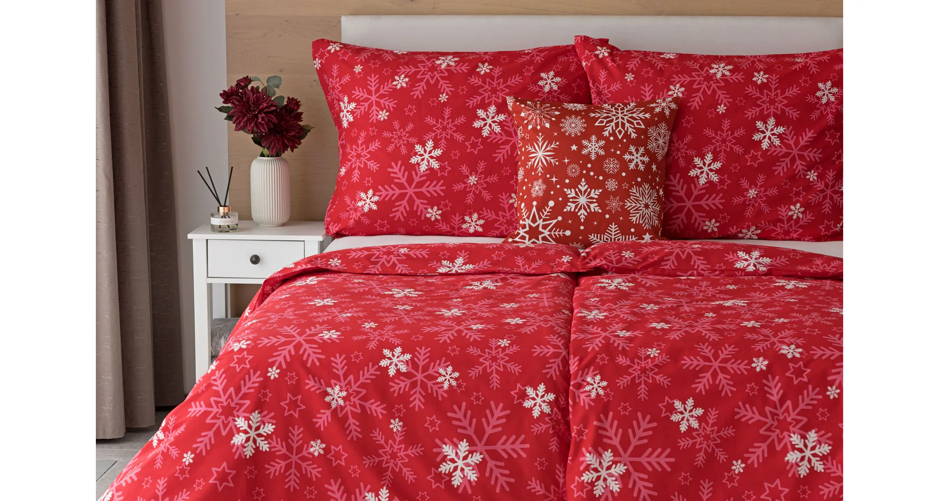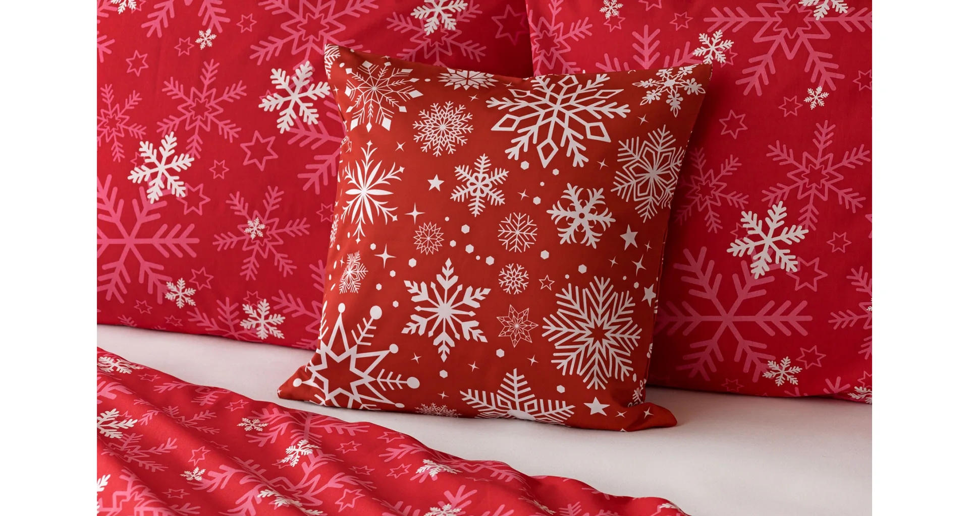 Sviatočne vyzerajúci vzor posiaty snehovými vločkami prináša posteľná bielizeň VLOČKY. Sýty vianočný odtieň červenej farby posiaty snehovými vločkami rozžiari každý interiér. Obliečka na prikrývku aj na vankúš je z oboch strán rovnaká.