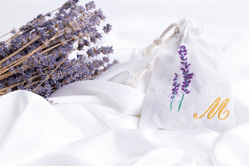 Dekorační sáček plněný sušeným květem levandule lékařské krásně provoní skříň či prádelník.